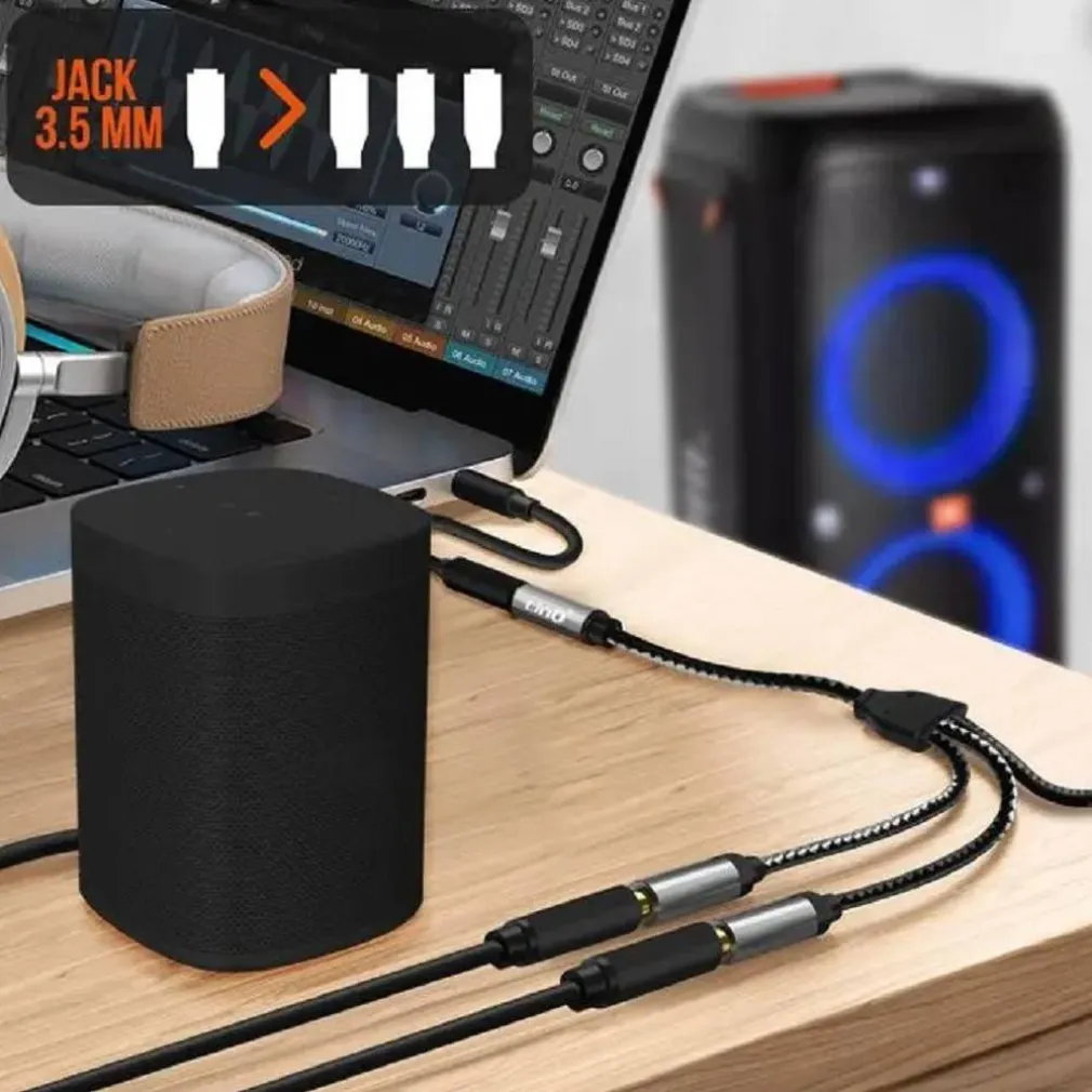Cavo adattatore e splitter da jack 3,5 mm femmina a triplo jack 3,5 mm femmina, pensato per i computer. Crea una configurazione adatta a tutte le videoconferenze. Compatibile con il mixer. Plug and play, utilizzo immediato.