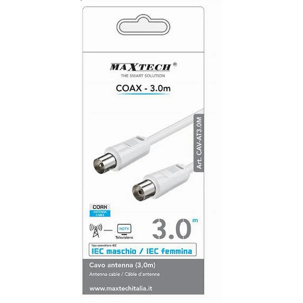 CAVO ANTENNA COAX 3MT IEC MASCHIO-IEC FEMMINA TELEVISORE HDTV PROLUNGA CAV-AT3.0M