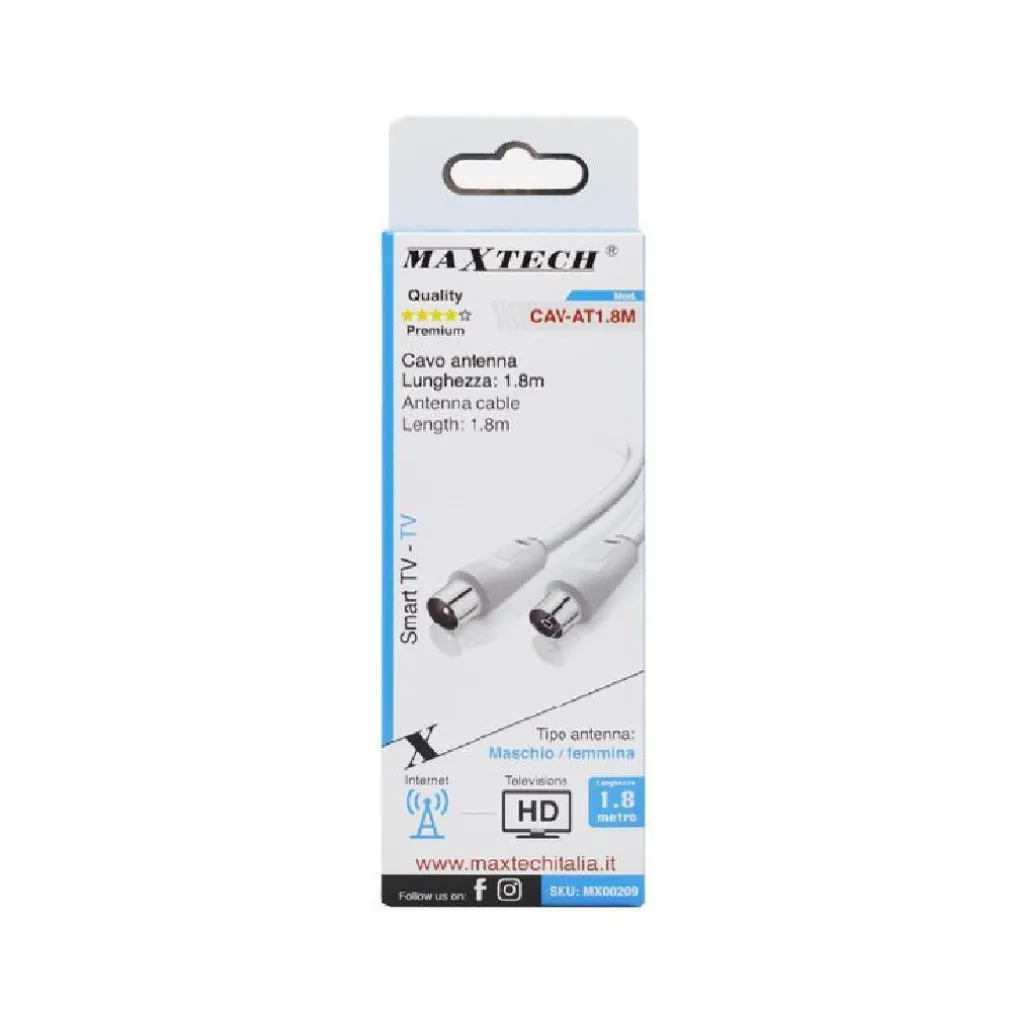 Ottimizza la tua esperienza televisiva e goditi una qualità del segnale senza precedenti. Non aspettare, migliora la tua configurazione con il CAVO ANTENNA MASCHIO-FEMMINA 1.8MT oggi stesso.