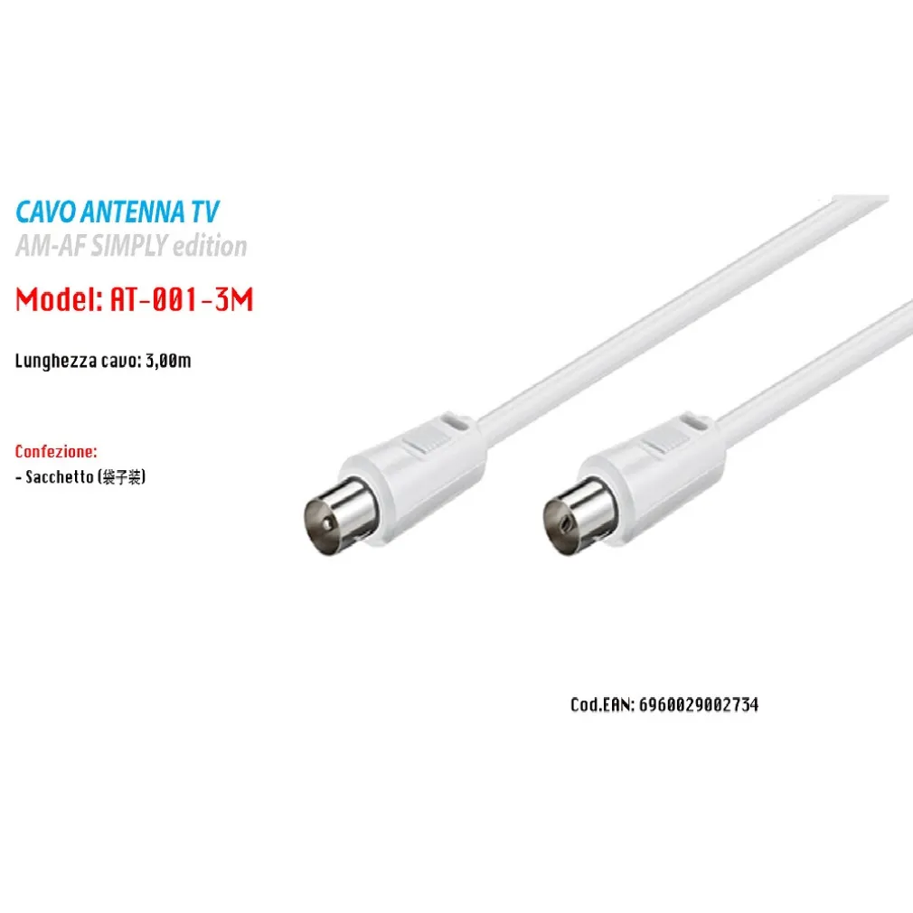 - 1 x Cavo Antenna Prolunga Coassiale TV Maschio Femmina M/F 3 Metri Maxtech AT-001-3M