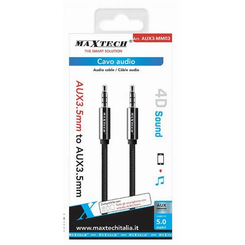 CAVO AUDIO AUX 3.5 MM MASCHIO/MASCHIO 3 CONTATTI PROLUNGA 5MT 4D SOUND AUX3-MM03