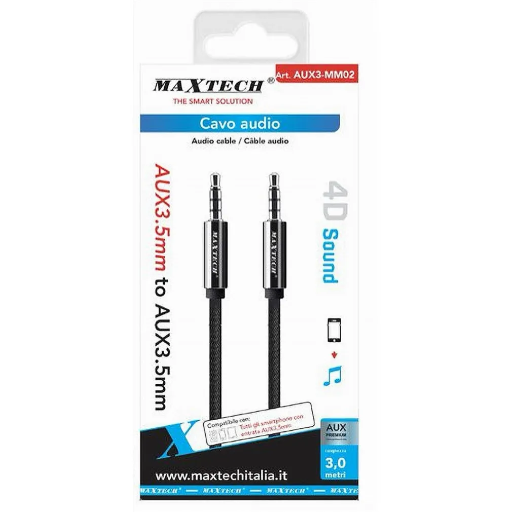 - 1 x Cavo Audio AUX 3.5mm Maschio/Maschio 3 Contatti Prolunga 3 MT 4D Sound