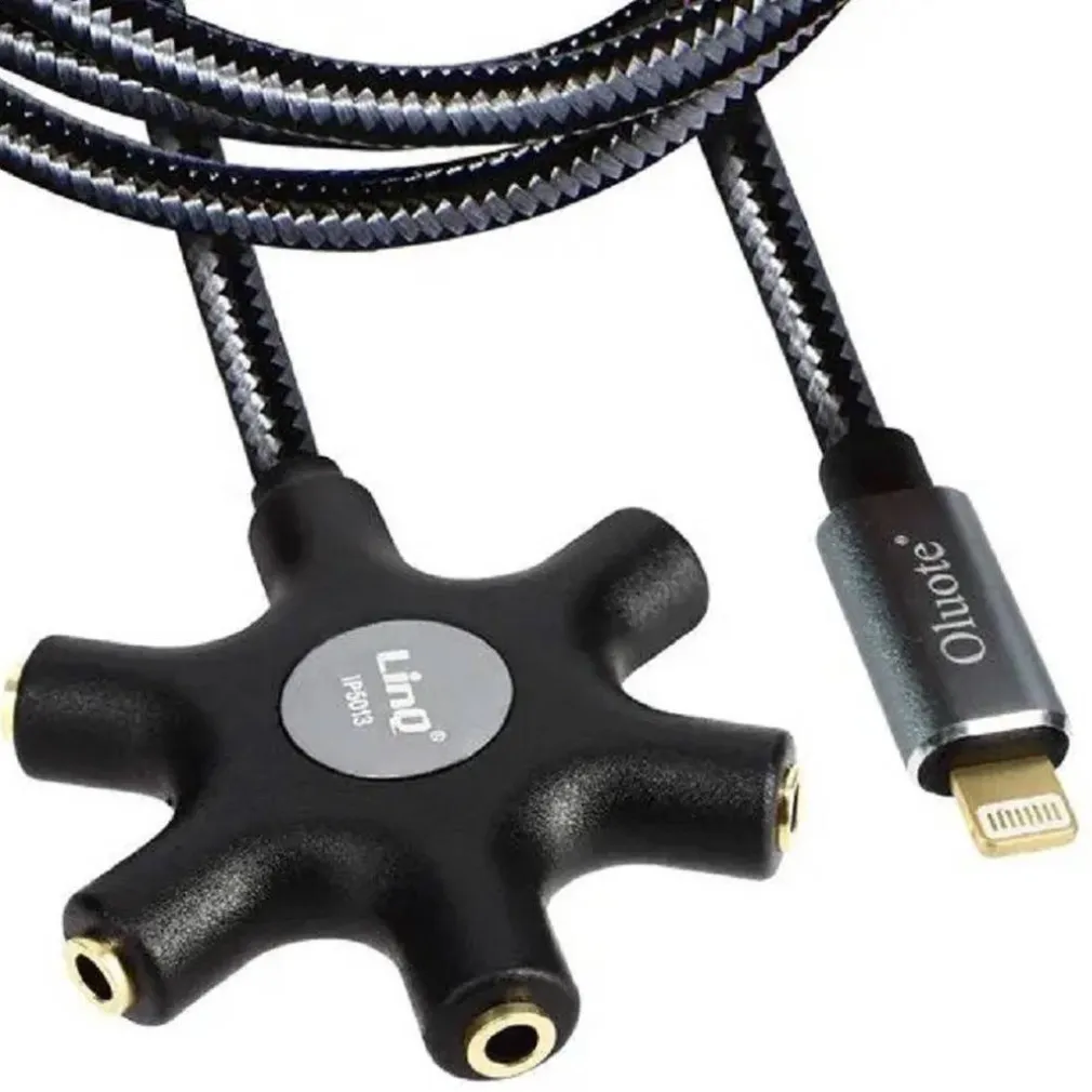 Cavo da Lightning a 5x jack 3,5 mm, per condividere la musica collegando fino a 5 auricolari insieme. Questo adattatore audio 5 in 1 consente anche di utilizzare un microfono, un amplificatore e altre apparecchiature audio. Misura 5 mt.