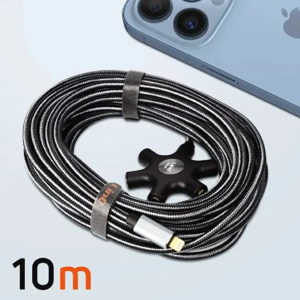 Un cavo audio da Lightning a jack da 3,5 mm. Un adattatore progettato con cinque porte di uscita jack da 3,5 mm. Perfetto per installazioni professionali o per il semplice ascolto della musica. Funzione splitter: condividi la musica collegando 5 auricolari contemporaneamente. La lunghezza di 10 metri risolve i problemi legati alla distanza. I connettori placcati in oro garantiscono una trasmissione audio stabile e priva di perdite. Il cavo è avvolto in nylon intrecciato, resistente alla corrosione e alle forature. Non è necessaria alcuna configurazione, basta collegarlo ed è pronto all’uso