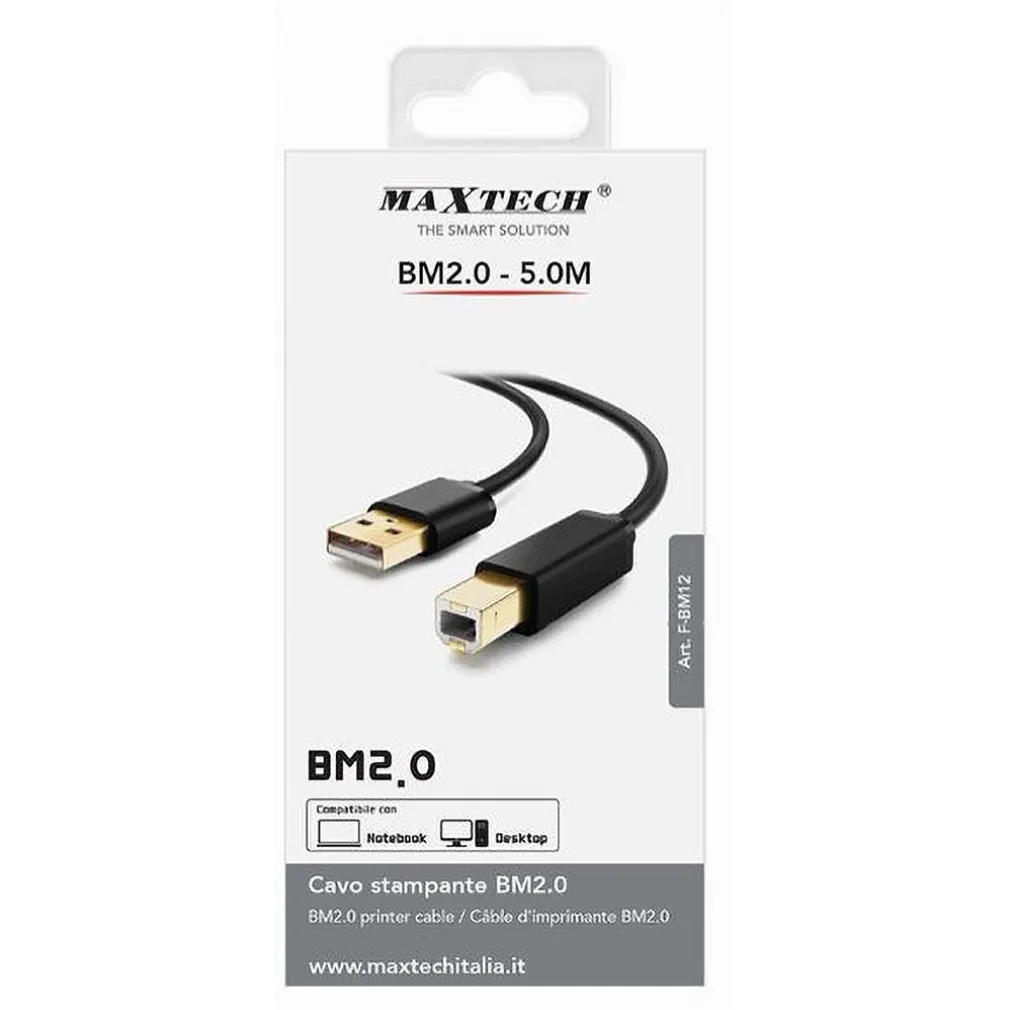 Cerchi un cavo affidabile e di alta qualità per collegare la tua stampante al tuo notebook o desktop? Il cavo F-BM12 cavetto per stampante BM2.0 è la scelta ideale per chi desidera stabilità, performance e compatibilità su una vasta gamma di dispositivi. Grazie alla sua lunghezza di 5 metri, offre grande flessibilità e praticità d’uso, perfetto sia per configurazioni home office che professionali.