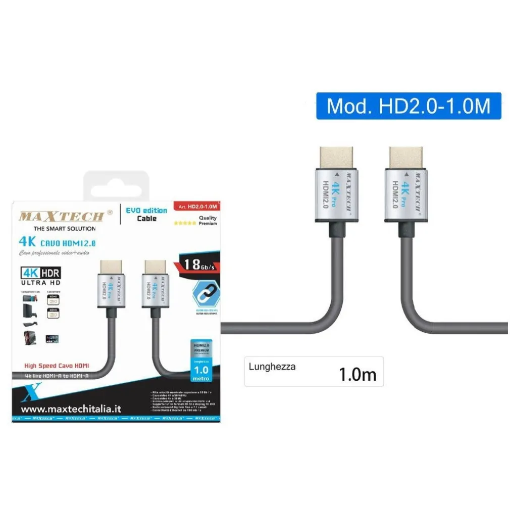 Cavo HDMI 2.0 4K Ultra HD 1 mt High Speed 18Gb/s Audio Video Cavetto HD2.0-1.0M