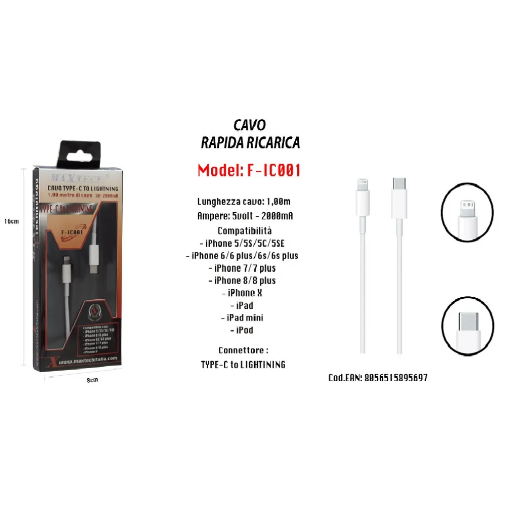 Quando devi sincronizzare o ricaricare il tuo iPhone, iPad o iPod con connettore Lightning, puoi collegarlo con questo cavo.Puoi anche abbinarlo a un alimentatore Apple per caricare il tuo dispositivo e per utilizzare la funzione di ricarica veloce di iPhone 8, iPhone 8 Plus, iPhone X e di alcuni modelli di iPad. Ampere 5volt – 2000ma. Lunghezza cavo 1 mt