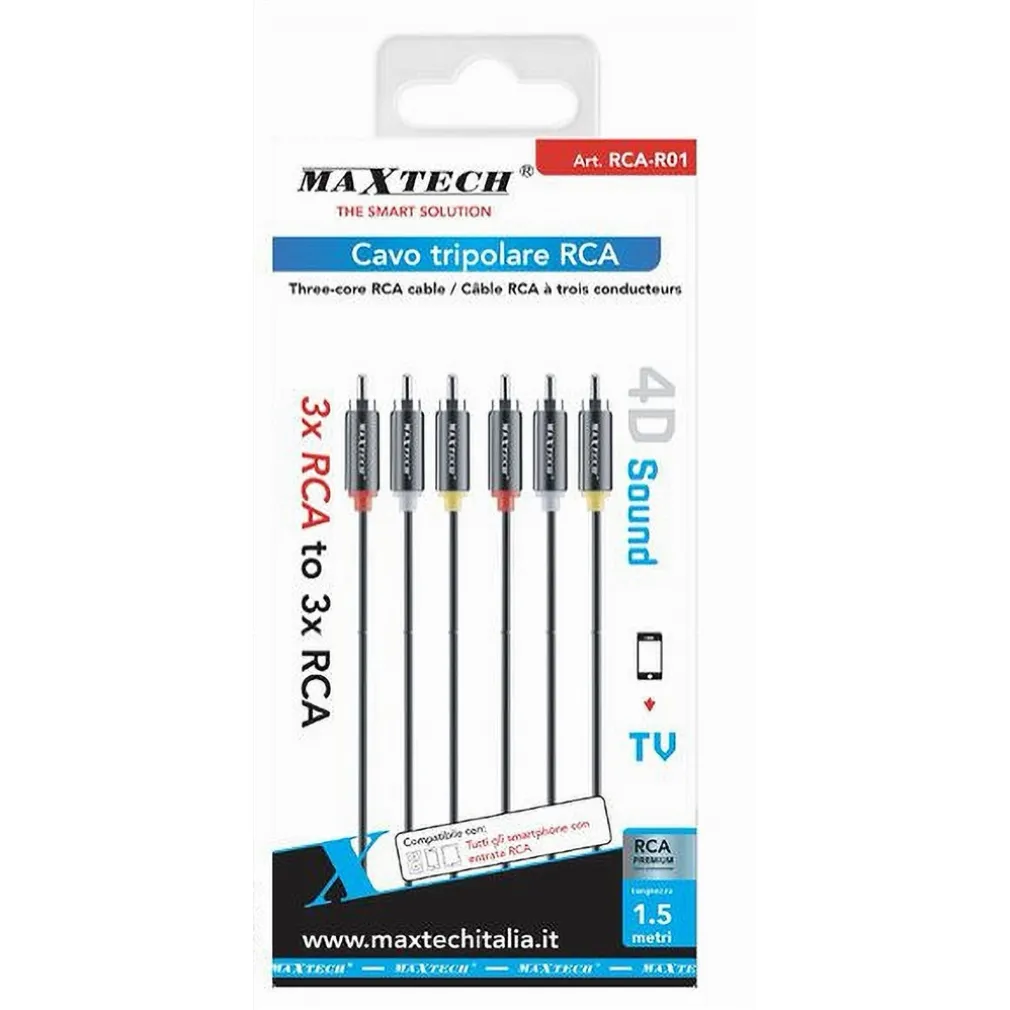Se stai cercando un cavo tripolare RCA di alta qualità per migliorare la tua esperienza audio-video, il Cavo Tripolare RCA Audio Video TV 3 x RCA Maschio/Maschio 1,5mt è la scelta perfetta. Grazie alla tecnologia 4D Sound e alle sue connessioni 3 x RCA maschio a 3 x RCA maschio, questo cavo garantisce una trasmissione del segnale nitida e stabile. Il design con cavi di segnale schermati separatamente assicura una connessione priva di interferenze, ideale per sistemi hi-fi e dispositivi con ingressi RCA.