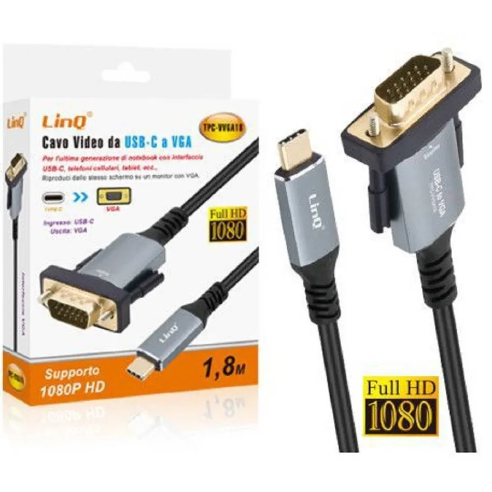 Cavo da USB-C a VGA, il complemento ideale per una maggiore flessibilità di connessione. Permette di collegare i dispositivi USB-C ad un proiettore, televisore o schermo VGA. Supporta una risoluzione fino a 1080p per prestazioni di visualizzazione ottimali. Compatibile con tutti i dispositivi USB-C: smartphone, tablet, computer, ecc. Molto semplice da usare, non è necessarie nessuna configurazione o installazione di software. Misura 1 metro e 80, facilita il collegamento dei tuoi dispositivi. Con base in alluminio premium e connettore placcato in oro 24K, progettati per un uso a lungo termine. Ha un design compatto e leggero, facile da riporre e trasportare.
