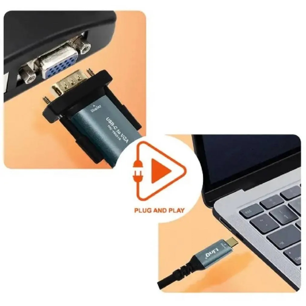 Cavo adattatore da USB-C a VGA: consente di collegare il tuo dispositivo USB-C a un display, proiettore o monitor VGA. Ha una risoluzione 1080p per una visualizzazione ad alta definizione. Plug and Play per un uso immediato.