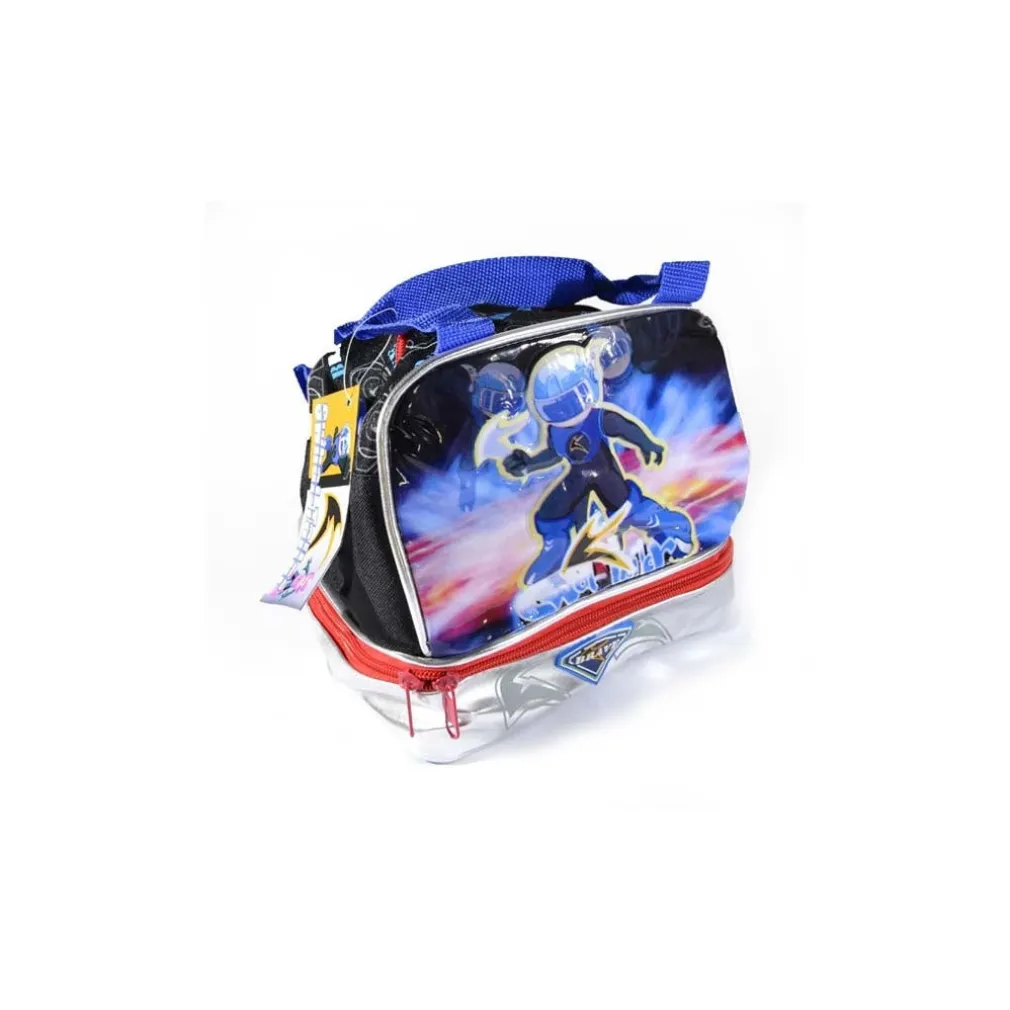 Cestino portapranzo o lunch box, SWALL TAYLOR BRAVE’ in tela, con doppia cerniera, manico da passeggio e tracolla regolabile, scomparto sul fondo. Interno salvafreschezza. Raffigurazione in PVC e in rilievo.
