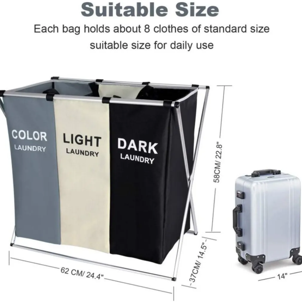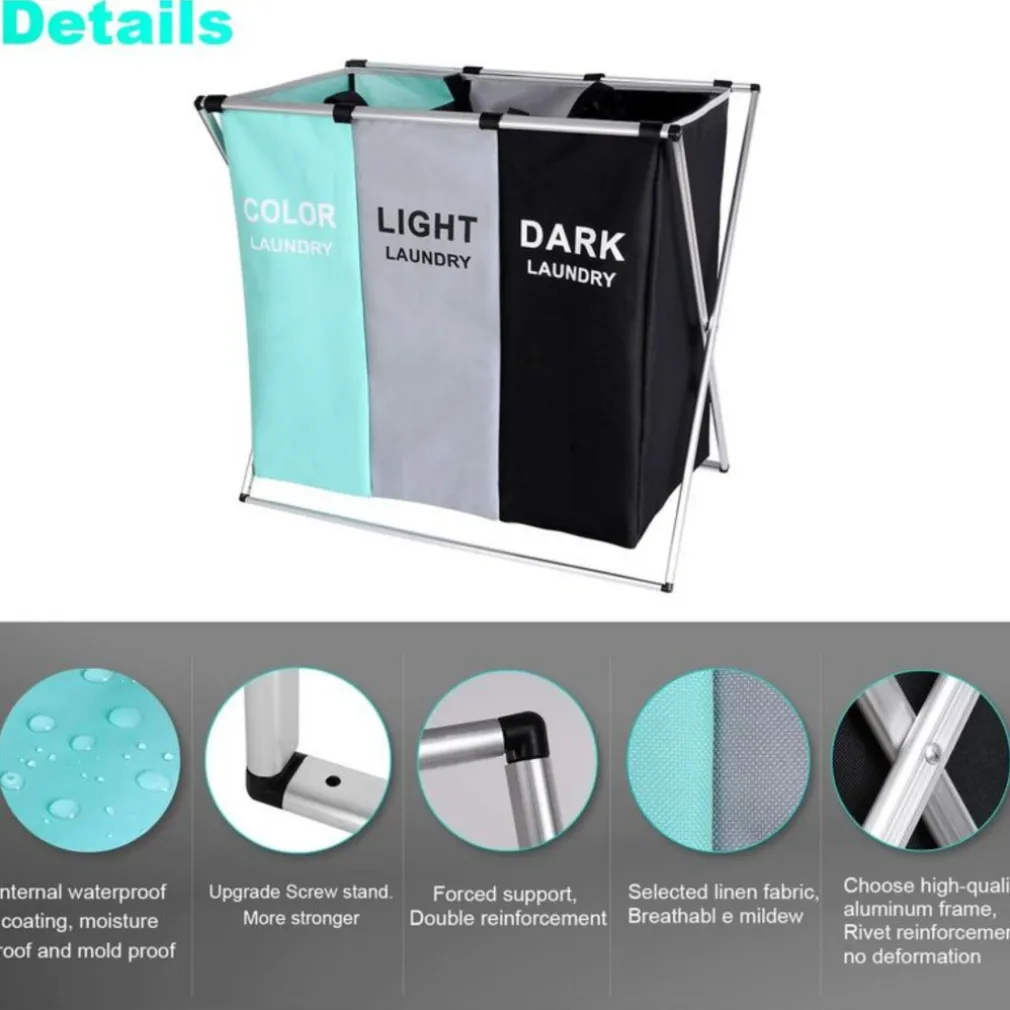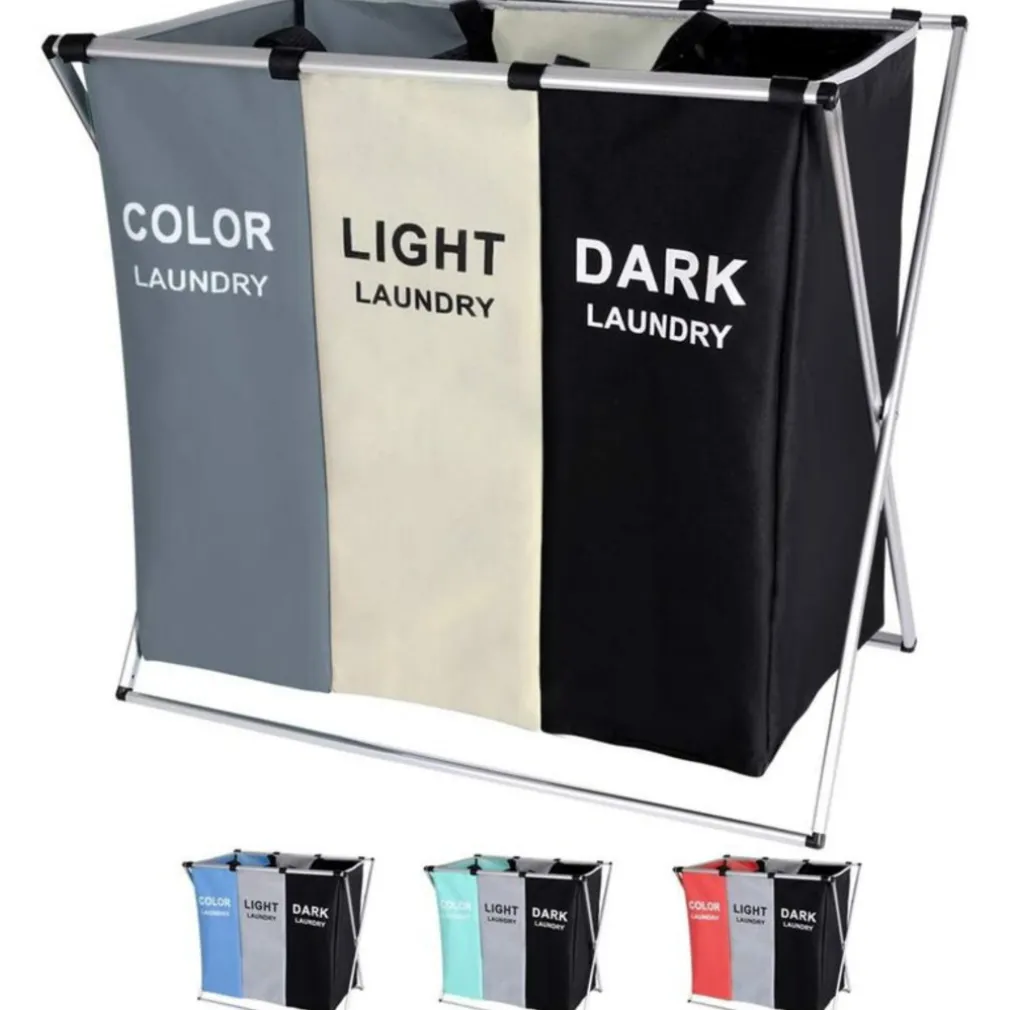 Dividi e conserva la biancheria sporca in questo bellissimo Cesto portabiancheria a 3 scomparti per la biancheria chiara, scura e colorata! Questo bellissimo cesto portabiancheria è realizzato con una solida struttura in metallo rivestito in tessuto di altissima qualità molto resistente e duraturo che non assorbe gli odori sgradevoli della biancheria sporca. Grazie alle sue dimensioni, questo cesto portabiancheria può contenere tutta la biancheria sporca della tua famiglia occupando il minimo ingombro. Ma ciò che rende davvero speciale questo bellissimo cesto della biancheria è il triplo scomparto interno per dividere i vari tipi di capi, infatti troverai uno scomparto per la biancheria chiara, uno per quella scura e uno per quella colorata, in questo modo avrai già la biancheria da lavare suddivisa risparmiando tempo e fatica. Completamente richiudibile e salvaspazio, infatti il cesto quando nn utilizzato può essere piegato e riposto anche negli spazi più stretti. Dal design semplice e minimale questo cesto della biancheria oltre alla sua enorme funzionalità si dimostra essere anche un bellissimo complemento d’arredo che valorizza la stanza donandole un tocco davvero speciale. Basta avere biancheria sparsa per tutta casa con il nuovissimo cesto della biancheria in Tessuto e alluminio.