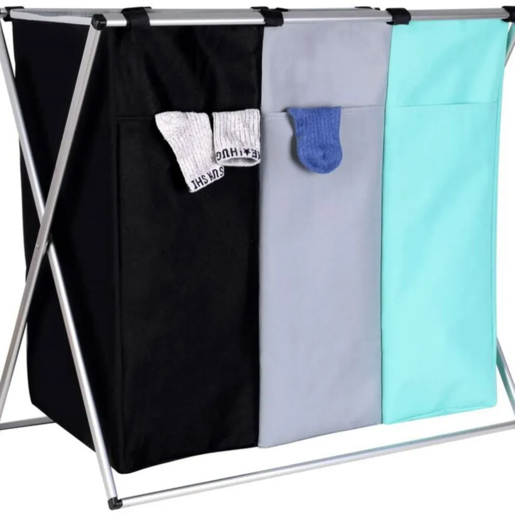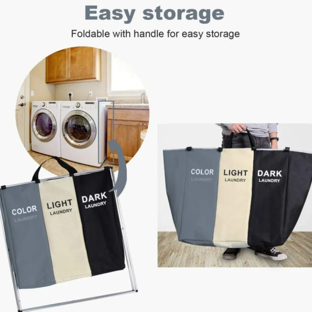 - 1 x Cesto Biancheria 3 Scomparti Portabiancheria Pieghevole Metallo e Tessuto