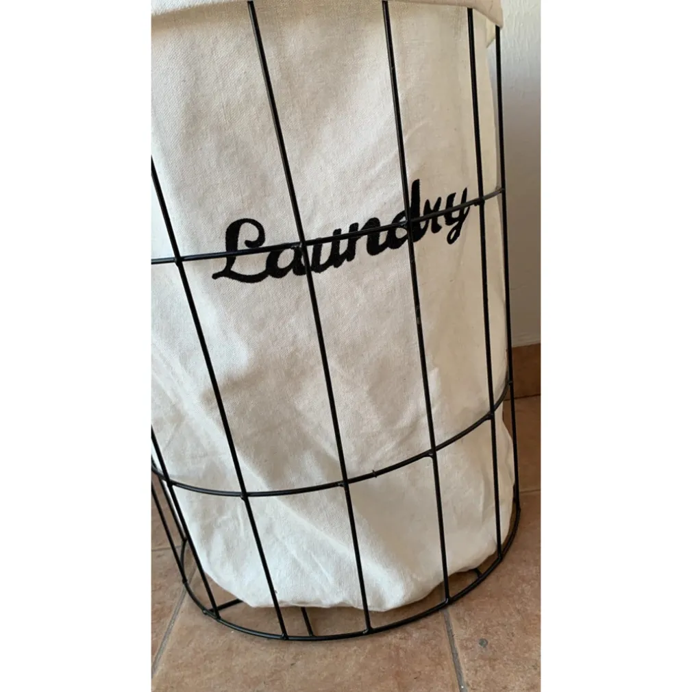 - 1 Cesto Contenitore Porta Biancheria con struttura in metallo e tessuto bianco.