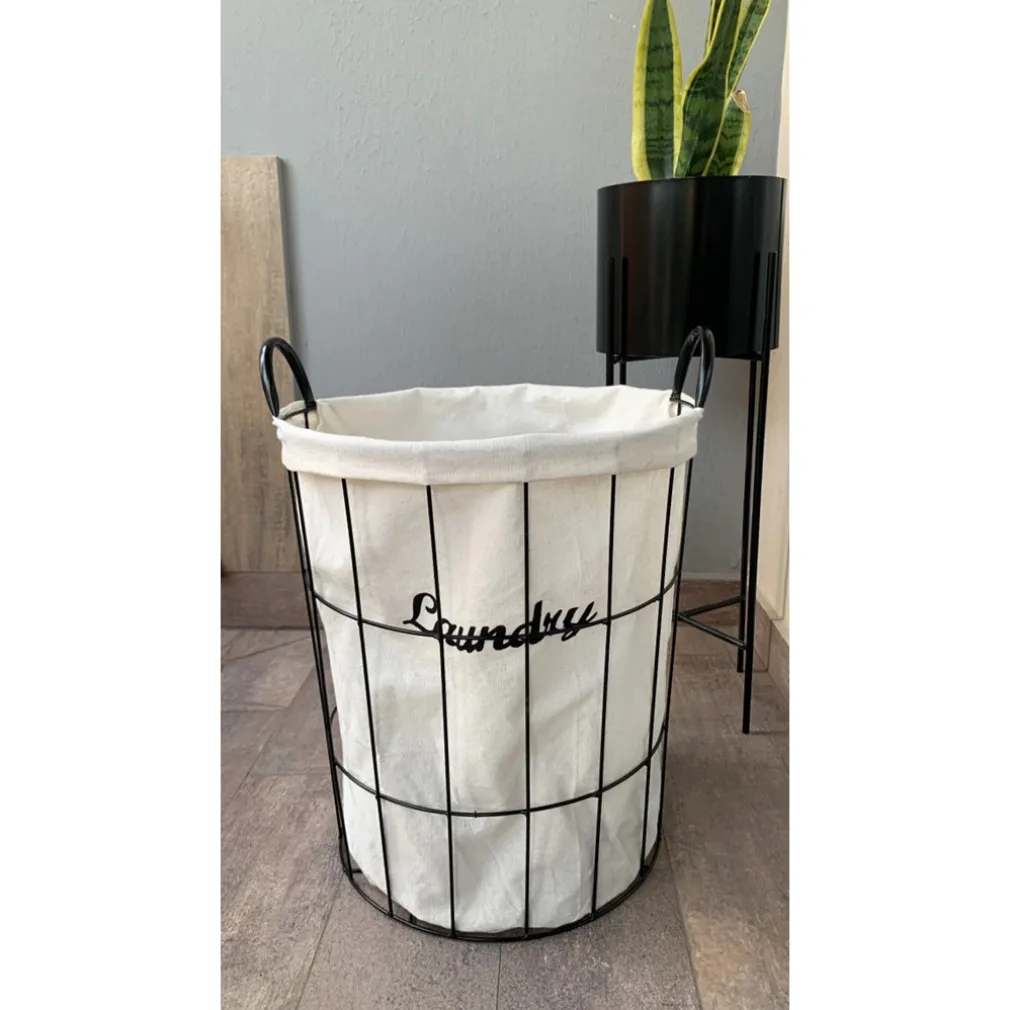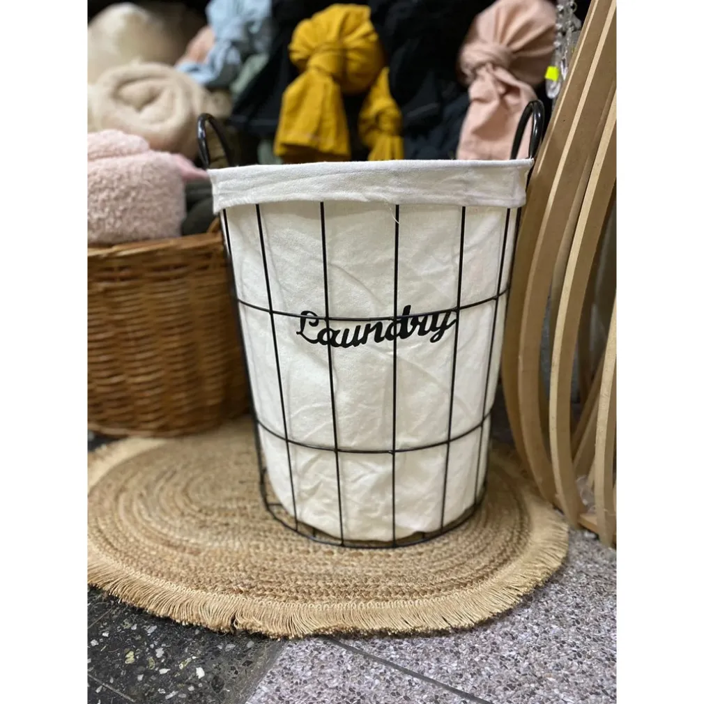 Il cesto presenta una struttura in metallo robusta, un tessuto sfoderabile e lavabile, e maniglie per un facile trasporto. È progettato per offrire una combinazione di praticità e stile.