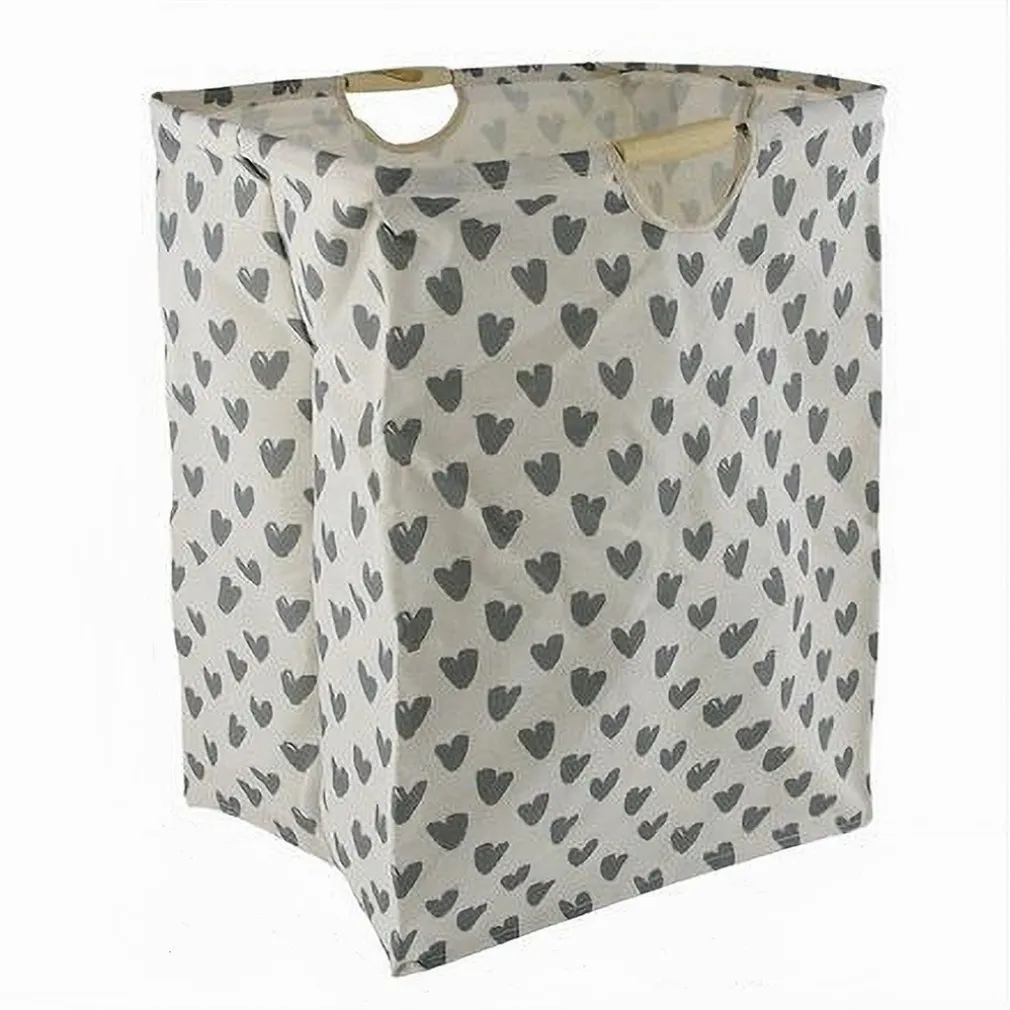 CESTO PORTA BIANCHERIA CUORI GRIGI CONTENITORE PANNI SPORCHI RICHIUDIBILE 10622