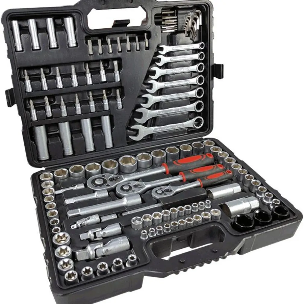 kit chiavi inglesi e chiavi a bussola cricchetto per un totale di 120pz in chrome vanadium ideale per officine, artigiani è per lavori fai da te