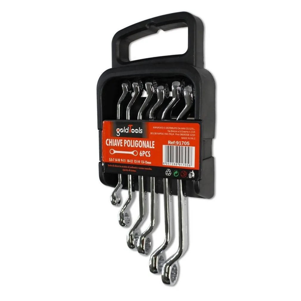Le chiavi poligonali a doppia testa curva sono uno strumento essenziale per qualsiasi lavoro di manutenzione o riparazione. Questo set da 6 pezzi, realizzato in resistente acciaio al cromo vanadio, offre una soluzione versatile e affidabile per affrontare una vasta gamma di compiti. Le dimensioni delle chiavi sono 5.5mm-7mm, 8mm-10mm, 9mm-11mm, 10mm-12mm, 12mm-14mm, e 13mm-15mm.