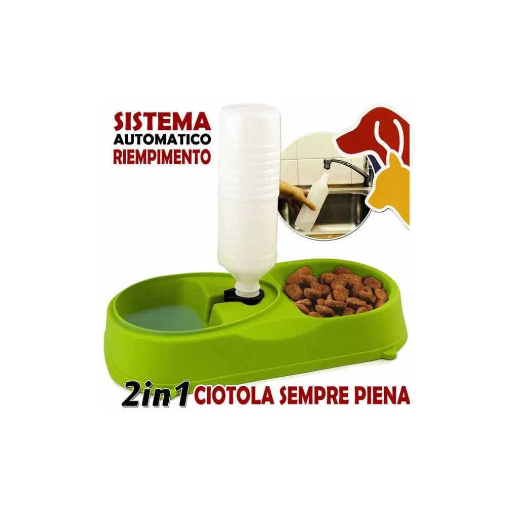 infatti grazie a questa doppia ciotola “intelligente” con sistema di rifornimento d’acqua automatico, il vostro cucciolo non rimarrà mai più senza acqua, anzi ne scorrerà nella ciotola la quantità giusta e sempre fresca, facendo stare sempre la riserva necessaria d’acqua. se necessario, il resto lo fa il sistema di dosaggio integrato.