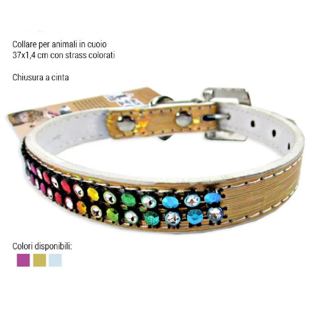 - 1 x Collare Per Cani Cuccioli Gatti Animali In Cuoio 37 cm Vari Colori Con Strass