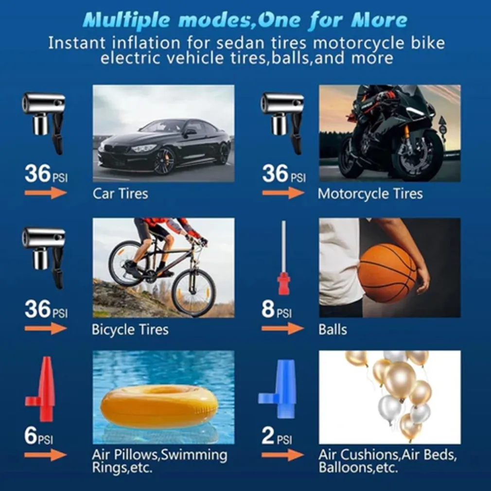 Questo compressore d’aria portatile senza fili è progettato per chi cerca efficienza, praticità e sicurezza. Non è solo uno strumento per gonfiare: è un dispositivo multiuso, perfetto per le emergenze quotidiane. La combinazione di alta pressione, facilità d’uso e portabilità lo rende un accessorio indispensabile per automobilisti, motociclisti e appassionati di attività all’aperto.