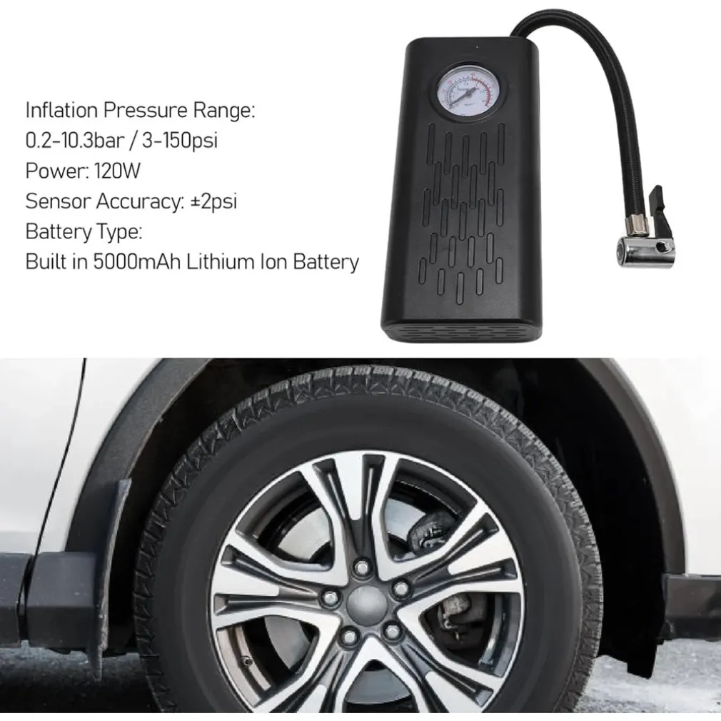 COMPRESSORE D’ARIA GONFIATORE ELETTRICO PORTATILE PER PNEUMATICI AUTO SENZA FILI MANOMETRO