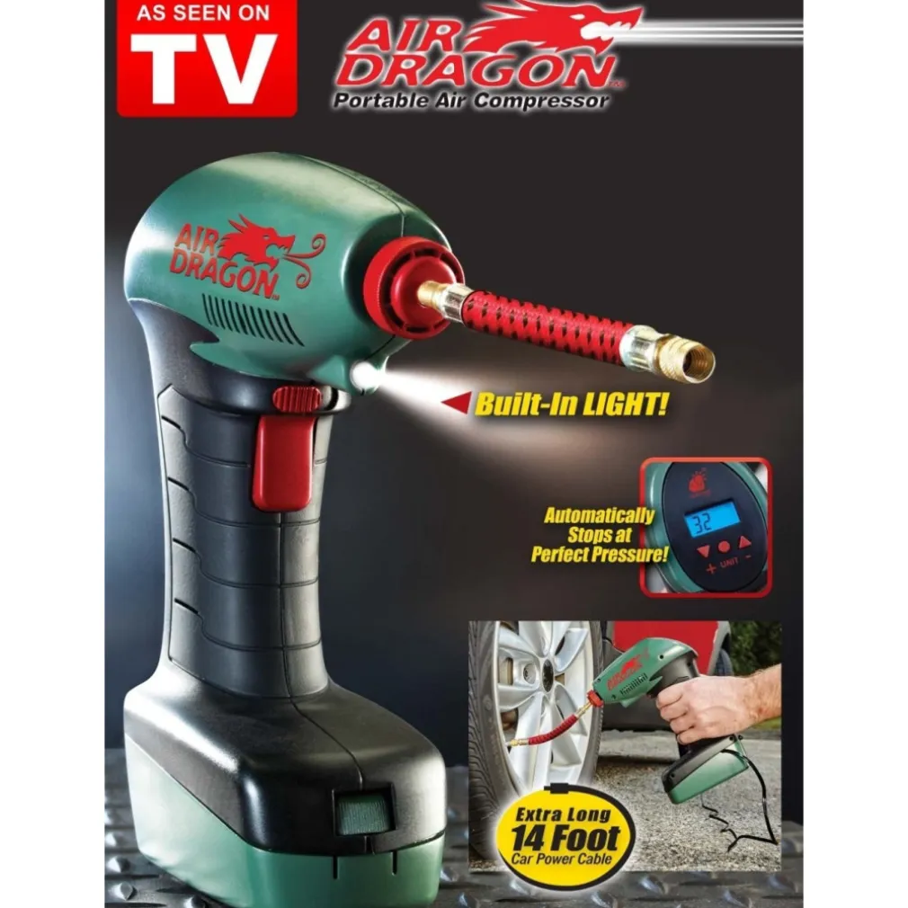 Il compressore Air dragon è capace di gonfiare rapidamente e in tutta sicurezza ogni tipo di pneumatico: perfetto per le gomme di auto e biciclette, per i materassi ad aria, per i lettini gonfiabili, per palloni da gioco ed addirittura le ruote delle carriole. La soluzione ideale in ogni situazione d’emergenza!