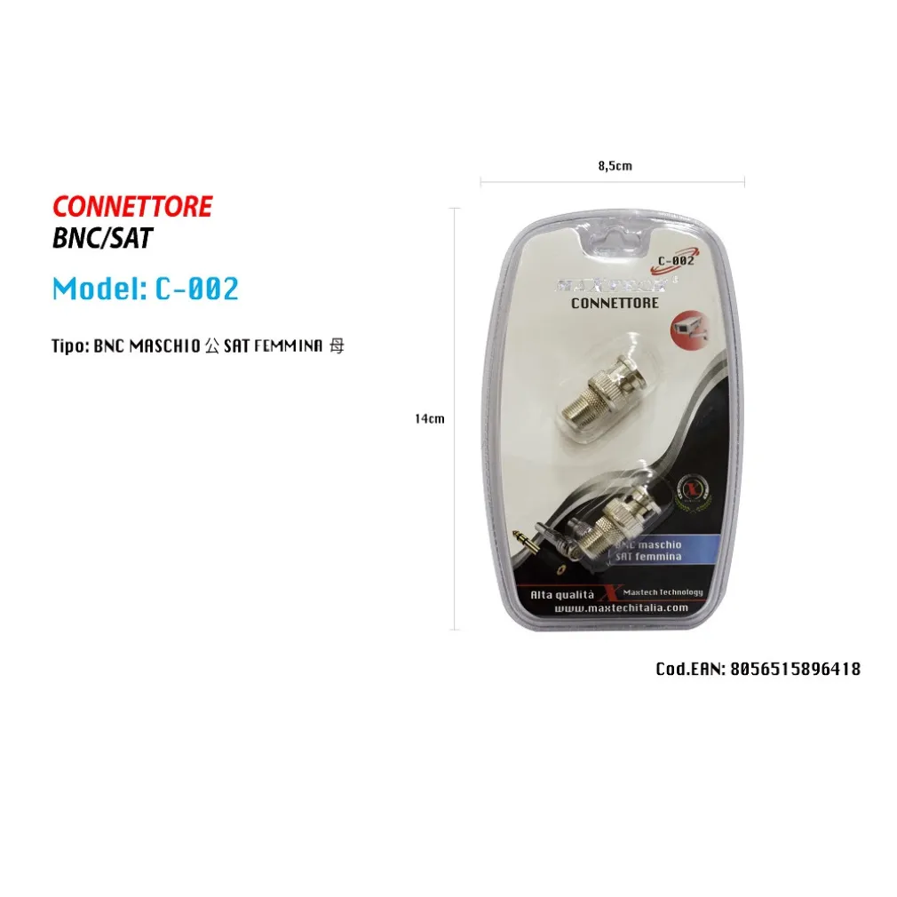 - 1x Connettore adattatore maschio BNC / presa SAT femmina MAXTECH C-002