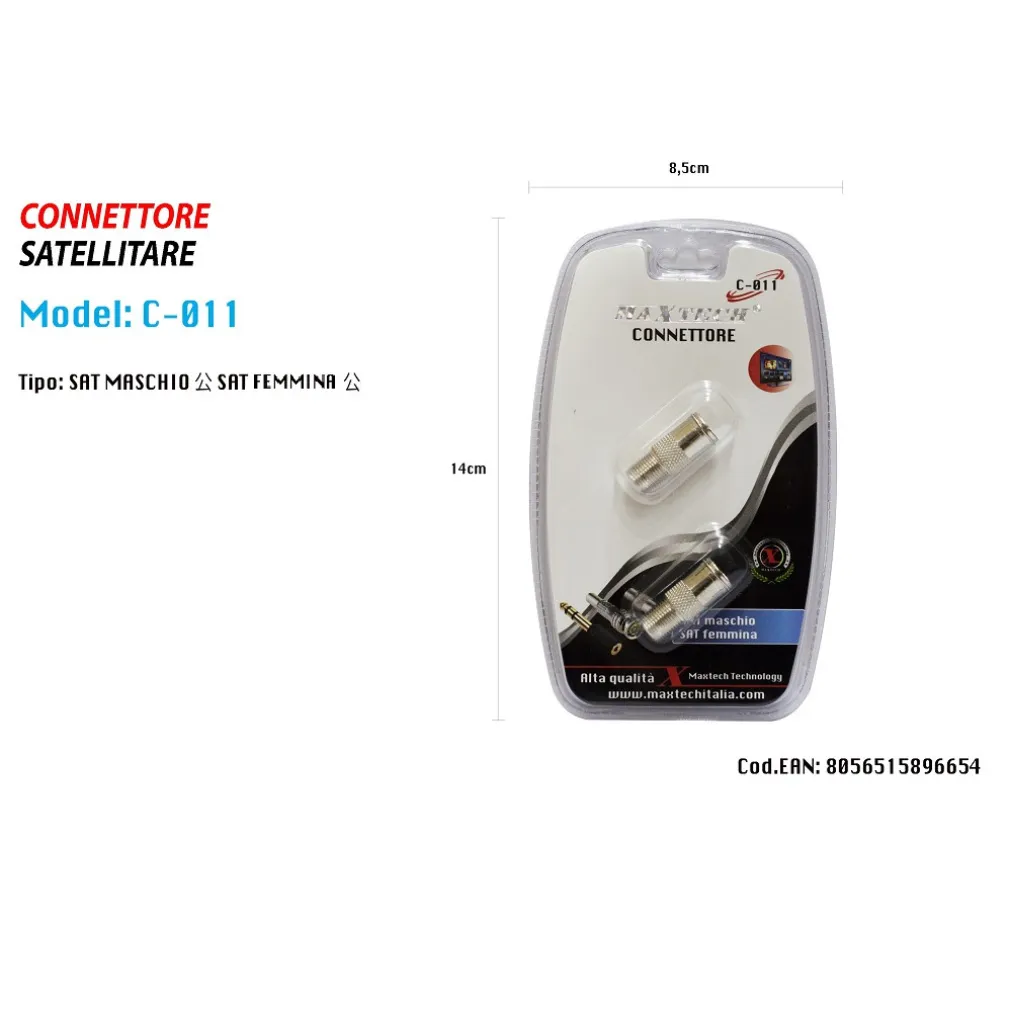 - 1x Connettore Satellitare MaxTech C011 maschio a femmina
