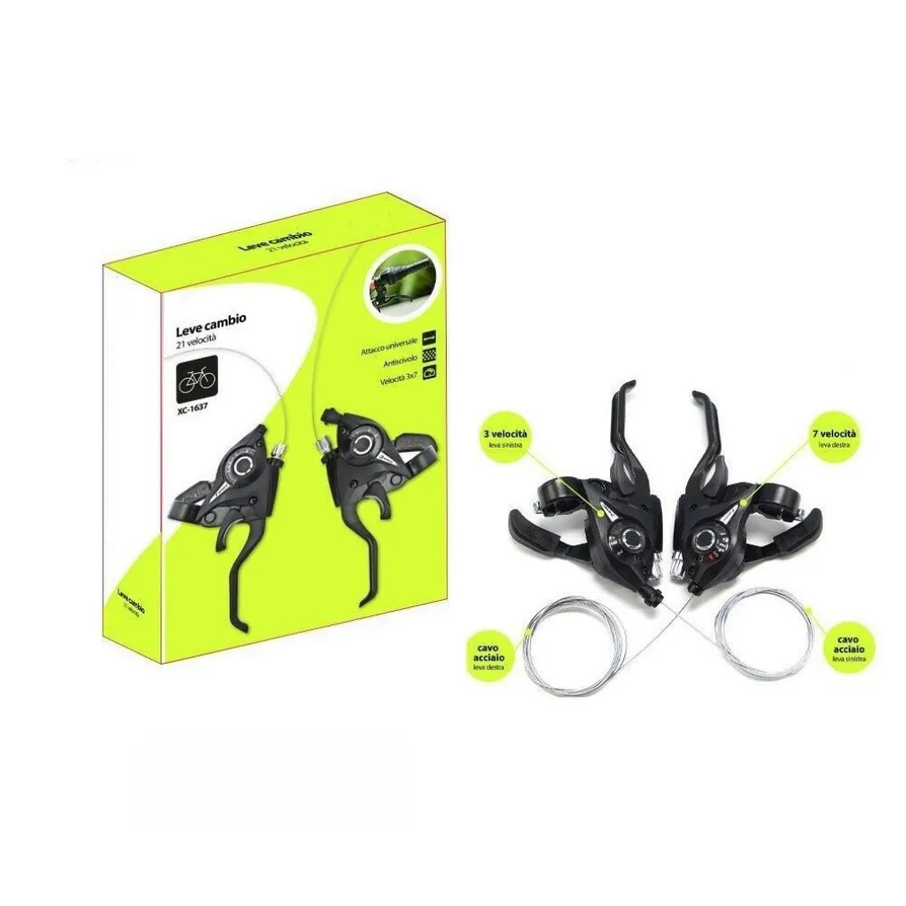 - Con le funzioni di cambio e frenata, facile da usare, la leva del cambio / leva del freno è adatta per biciclette con anteriore 3 e posteriore 7.