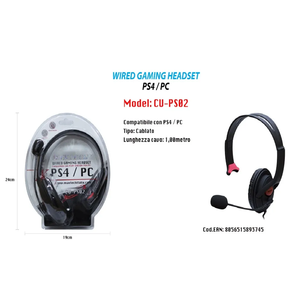 CUFFIE COMPATIBILI MONOCUFFIA GAMING CON MICROFONO PS4 / PC MAXTECH CU-PS02