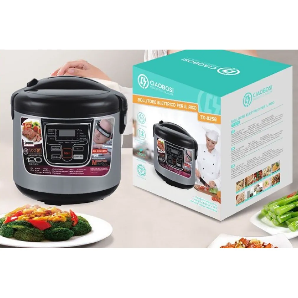 Se la tua passione è il Riso, non può mancare nella tua cucina il Cuociriso. Ideale per ottenere un riso cotto al punto giusto, dal sapore gustoso e consistenza soffice e idratato. Il Cuociriso è dotata di una potenza pari a 900W con Capienza di 6 Litri. Il Recipiente interno è resistente al calore, mentre il corpo esterno è in Acciaio.