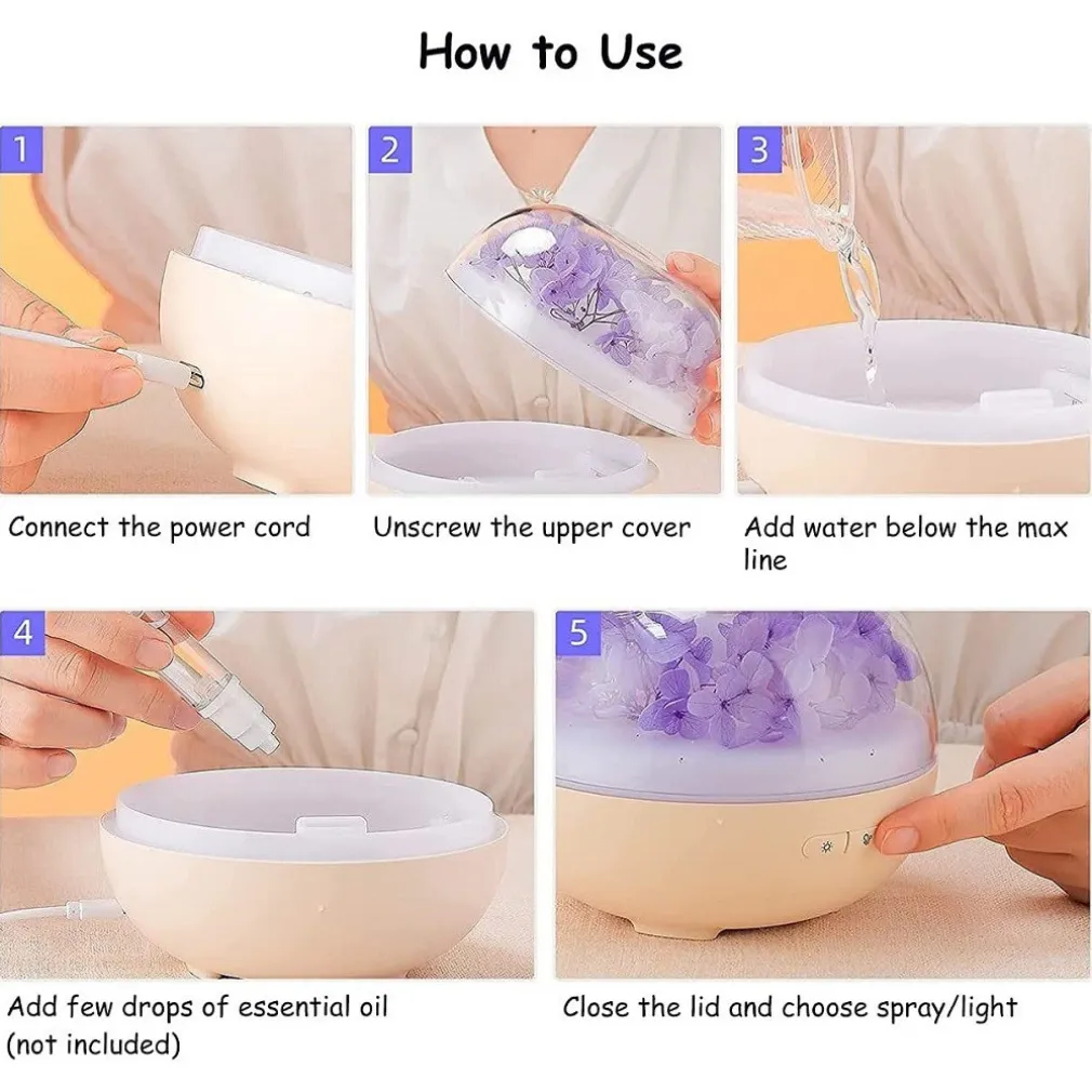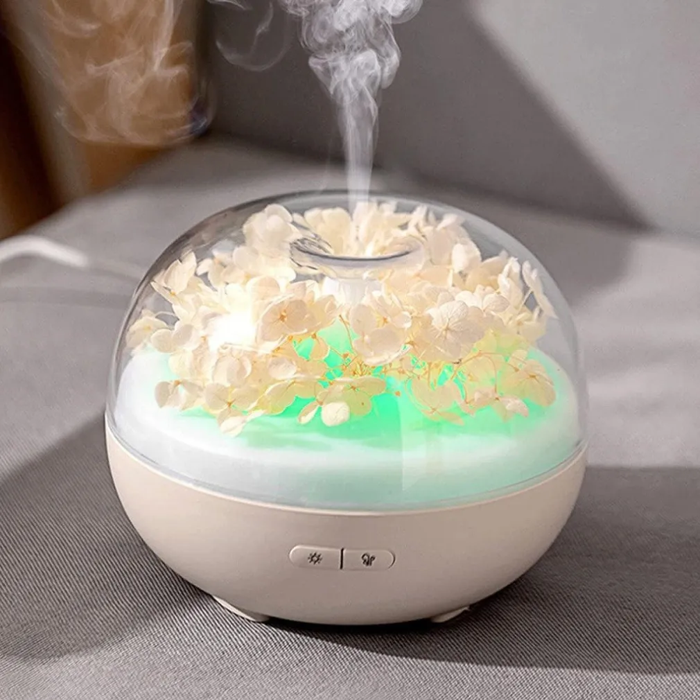 Non solo un diffusore, ma anche un piccolo umidificatore. Aggiungi qualche goccia del tuo olio essenziale preferito per rilassarti con le tue fragranze preferite.