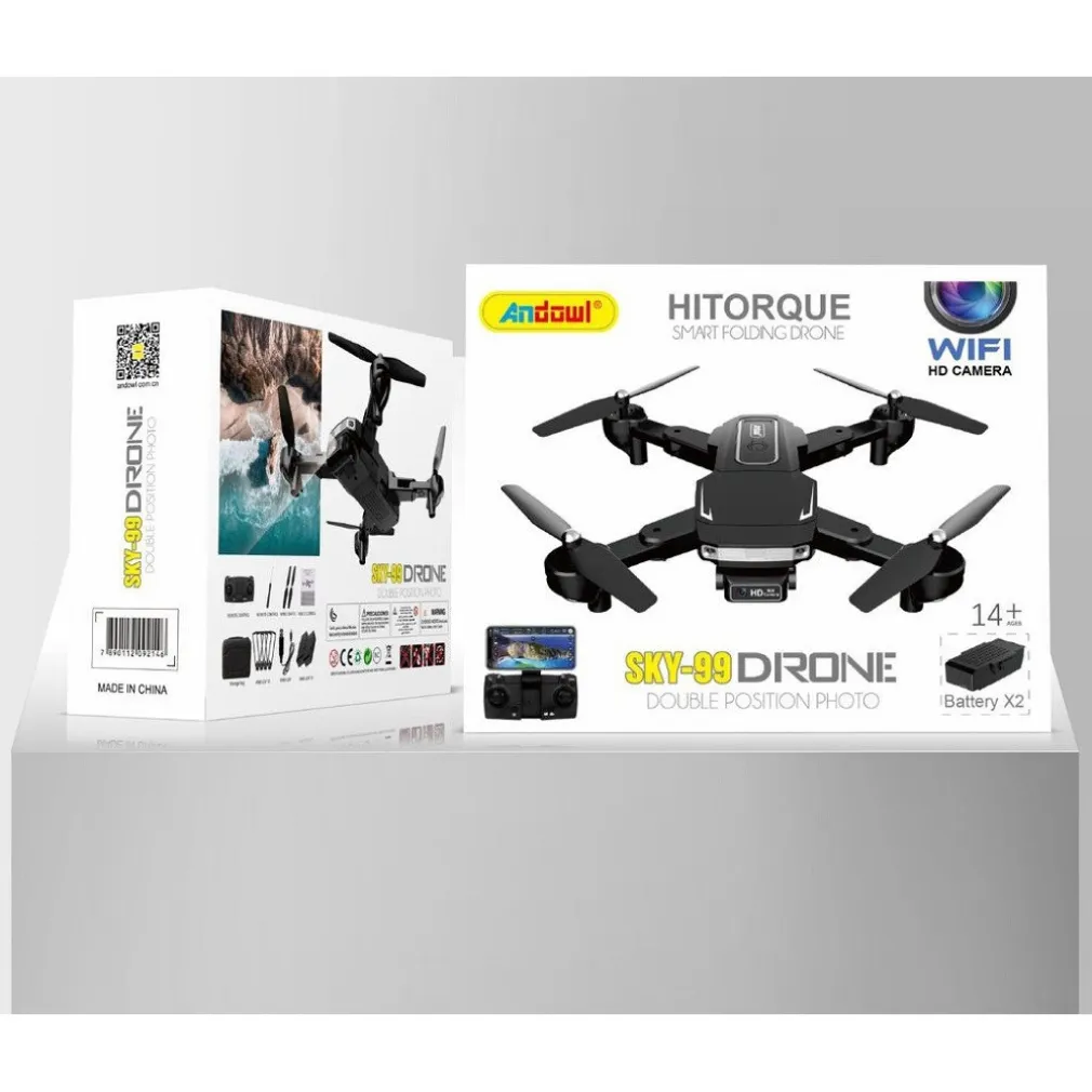 DRONE ANDOWL SKY-99 DRONE DOBLE POSITION PHOTO è uno dei nostri droni più portatili, convenienti e facili da usare fino ad oggi. Vanta un design compatto e a basso profilo che si ripiega abilmente fino alle dimensioni di una bottiglia d’acqua, rendendolo più facile da trasportare per viaggiare. Ogni braccio si piega verso l’interno verso il corpo del drone, il che lo rende abbastanza piccolo da stare in mano e gettato in uno zaino o in una borsa senza occupare troppo spazio. Inoltre, non devi nemmeno rimuovere le pale dell’elica una volta ripiegate, così puoi lanciarla rapidamente e prendere il volo non appena ne hai bisogno.