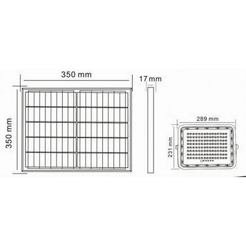 - Dimensione Pannello: Il pannello solare misura 350x350x17mm, offrendo un’ampia superficie per catturare la luce solare.