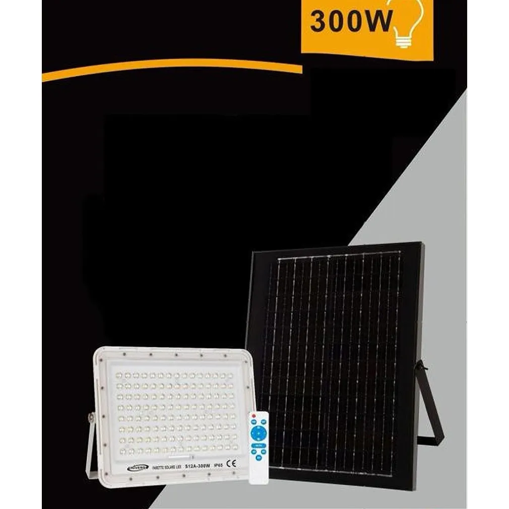 Faro Faretto Pannello Solare 300W Luce Fredda 6500K IP65 Telecomando S12A-300W