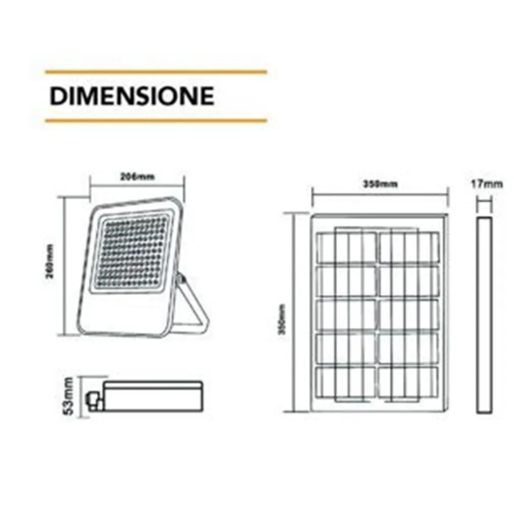 FARO LED PROIETTORE DA ESTERNO 180W CON PANNELO SOLARE LUCE FREDDA 7000K SL-801-200-7000K