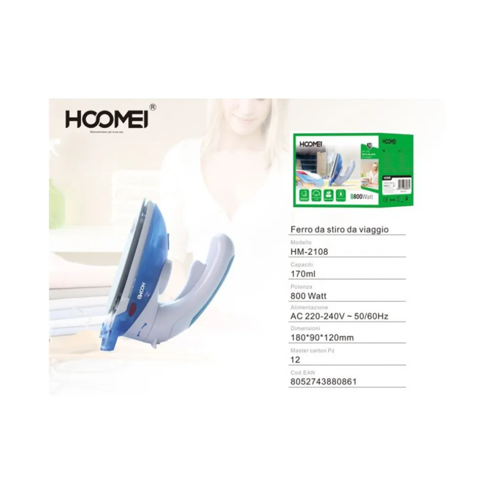 Il Ferro da Stiro Vapore Viaggio 800W con Piastra in Teflon e Manico Reclinabile HM-2108 è l’accessorio ideale per garantire prestazioni eccellenti e praticità durante i viaggi o in spazi ridotti.