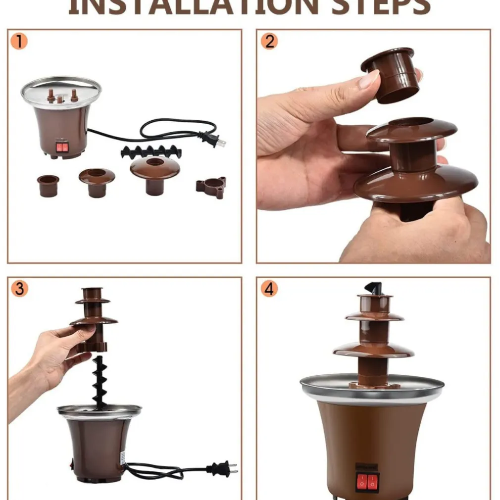 - 【FACILE DA IMPOSTARE】 La fontana per fonduta di cioccolato è facile da montare e smontare, facilitando l’installazione e la pulizia, quindi dopo le feste non c’è disordine per te, dandoti più tempo per intrattenere gli ospiti.