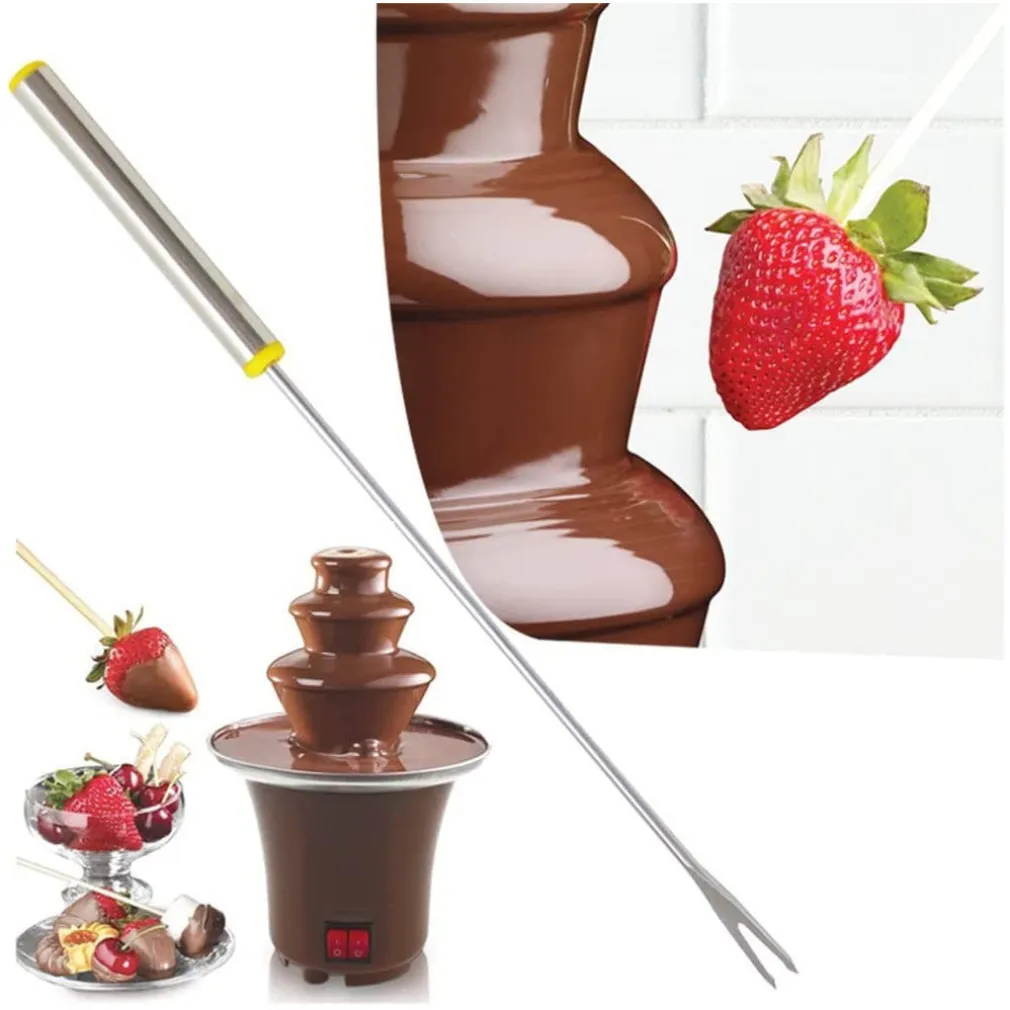 Puoi usare una varietà di cibi, cioccolatini o salse con la tua fontana di fonduta di cioccolato per creare il sapore che desideri. puoi usare cioccolato al latte, cioccolato fondente, con fragole, spicchi di mela, ciliegie, marshmallow, popcorn, salatini, ali, verdure, ecc.