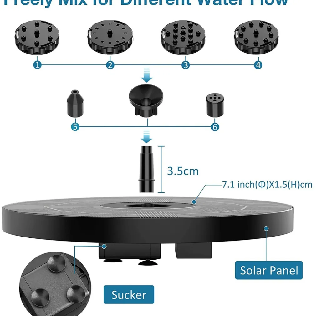 Fontana a Pompa Solare, costruirà per dare un’atmosfera rilassante al tuo giardino. Questa fontana solare da giardino è ideata per essere collocata nella vaschetta degli uccelli, acquario dei pesci o piccolo stagno, ecc.