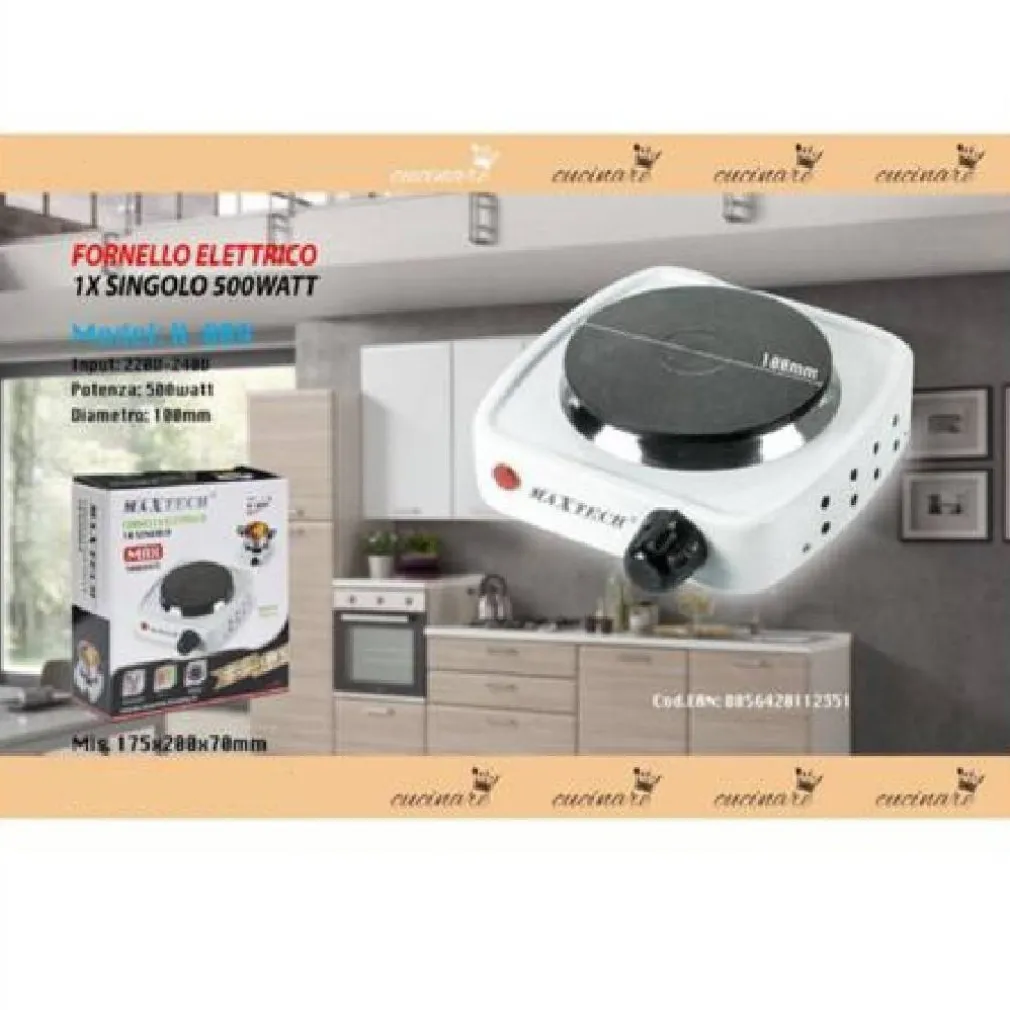 Fornello elettrico ad una piastra con temperatura regolabile da 0 a 5. Dotato di sistema di protezione surriscaldamento per assicurare la massima sicurezza. Perfetto da utilizzare in vacanza, campeggio, in gita, ecc. Dotato di 4 piedini antiscivolo che assicurano maggiore stabilità.