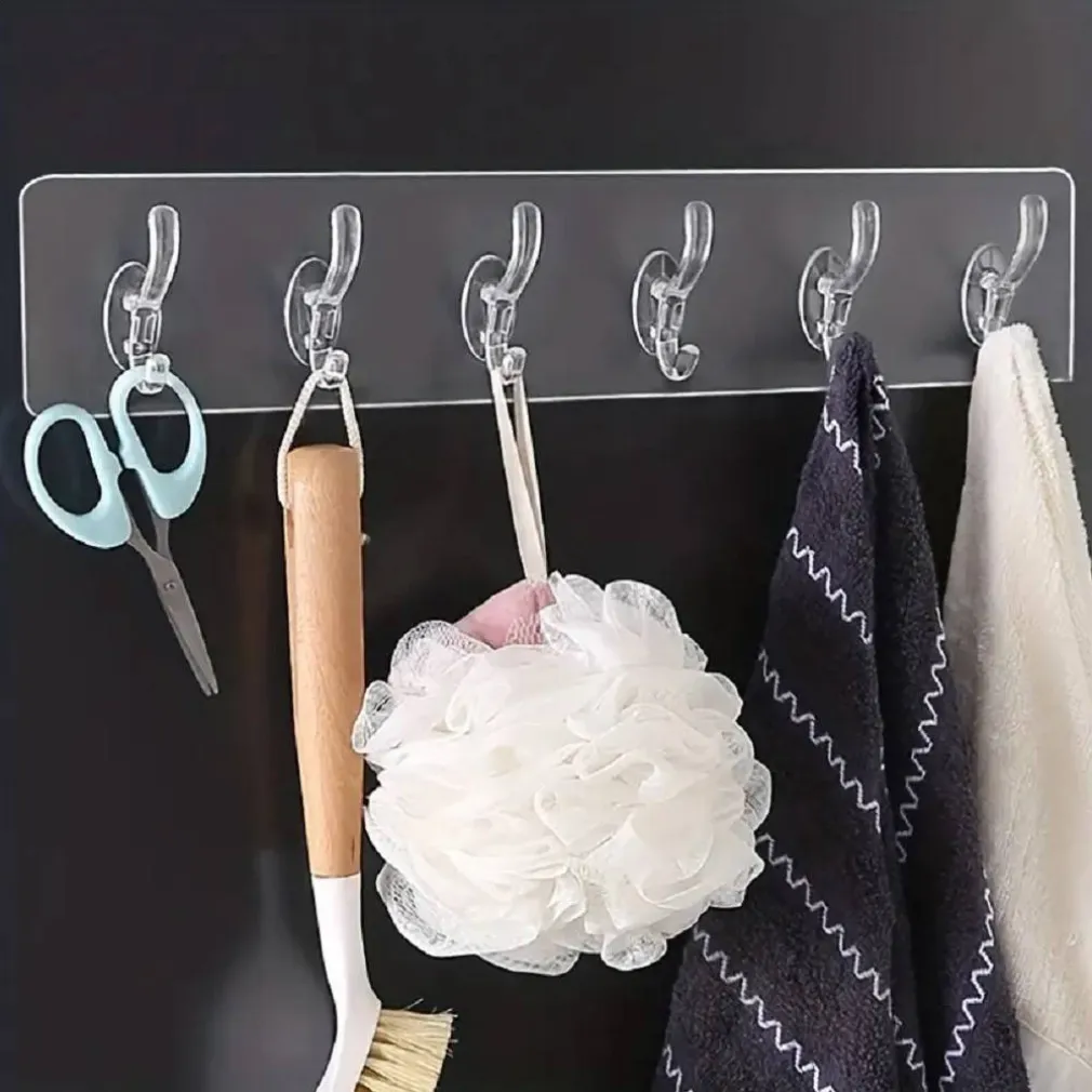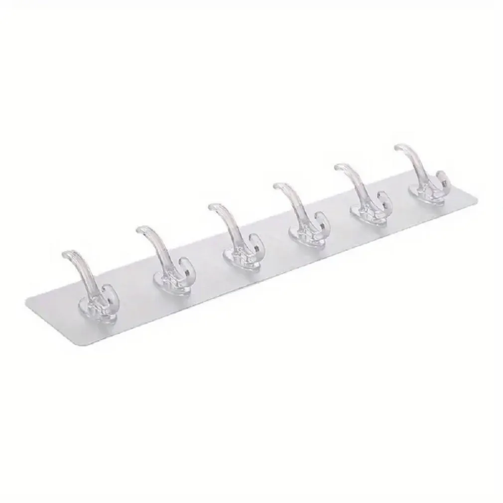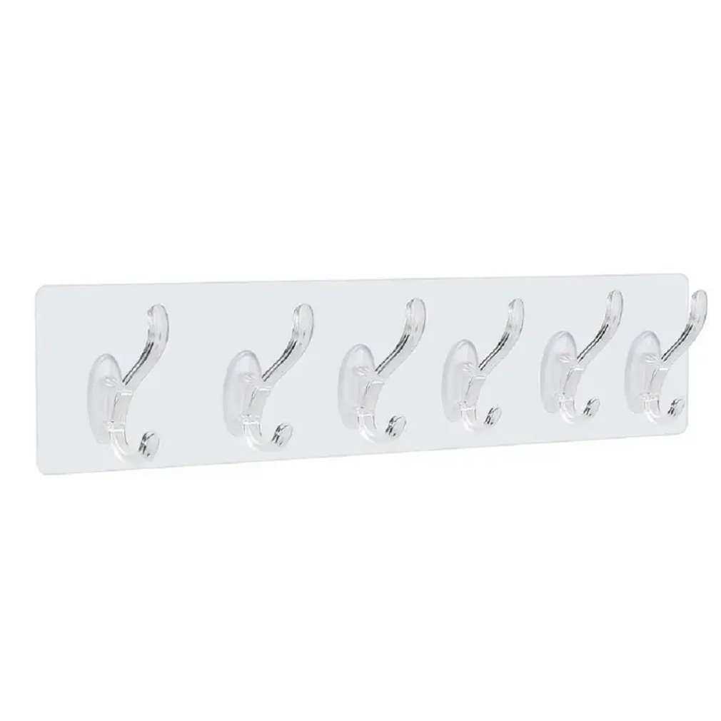 Gancio Appendiabiti da Parete a 6 File Adesivi Trasparenti per Appendere Accessori