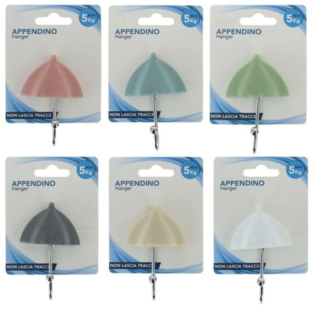GANCIO APPENDINO ADESIVO APPENDIABITI DA PARETE CUCINA BAGNO FORMA OMBRELLO COLORATO 10811