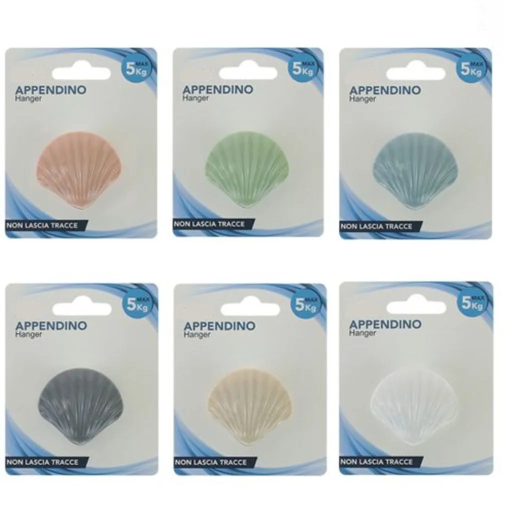 1x Gancio appendiabiti adesivo con forma conchiglia colorata
