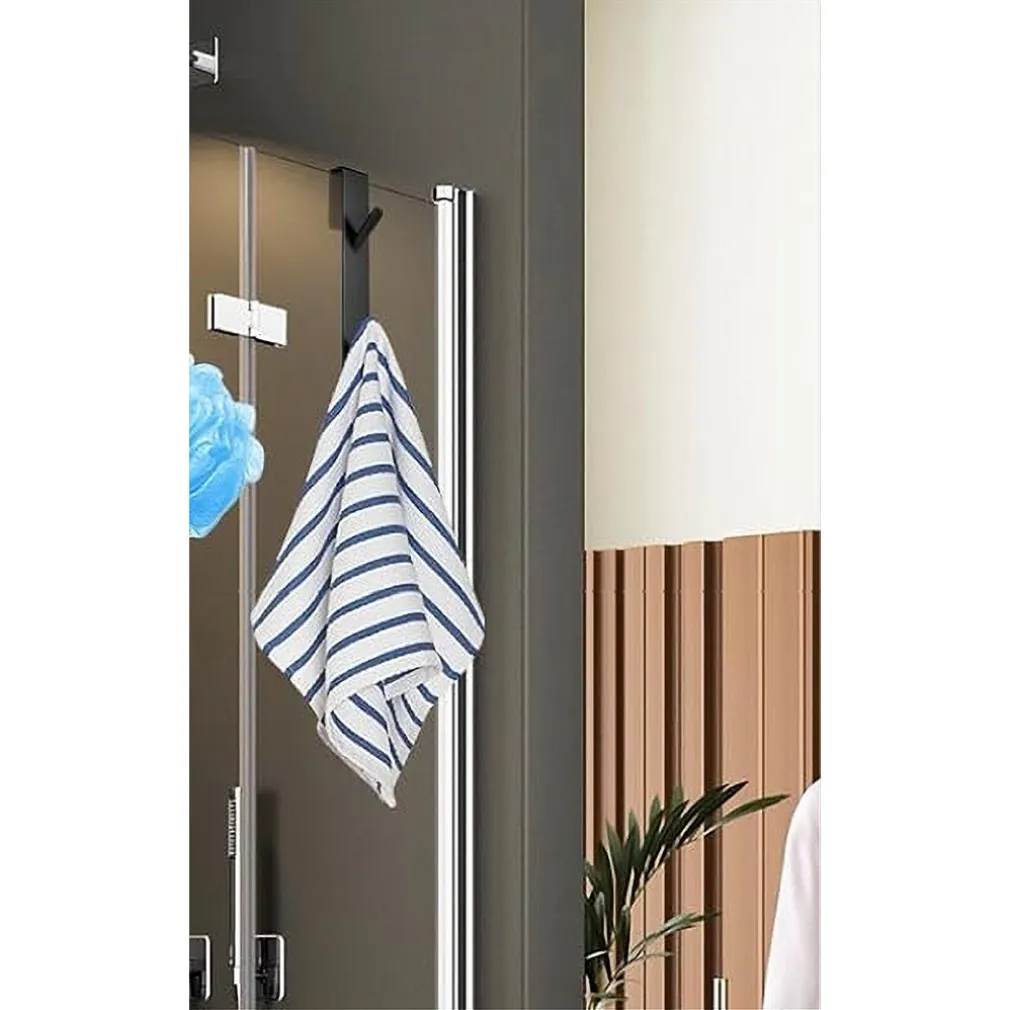 Gancio Doppio per Porta Box Doccia 4x18cm Nero – Appendere Asciugamani e Risparmiare Spazio nel Bagno