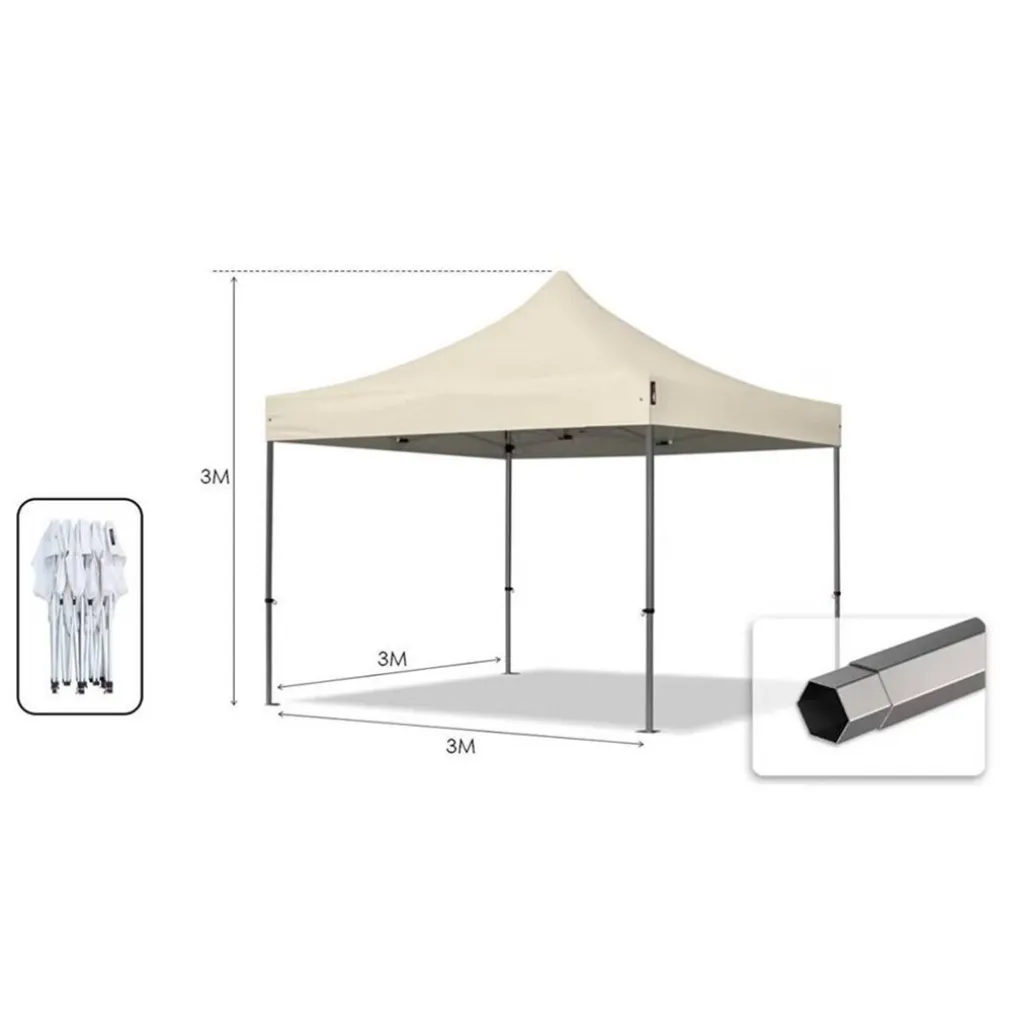 GAZEBO PIEGHEVOLE GIARDINO 3X3X3MT TENDA TELO BEIGE PADIGLIONE MERCATI SAGRE 222713