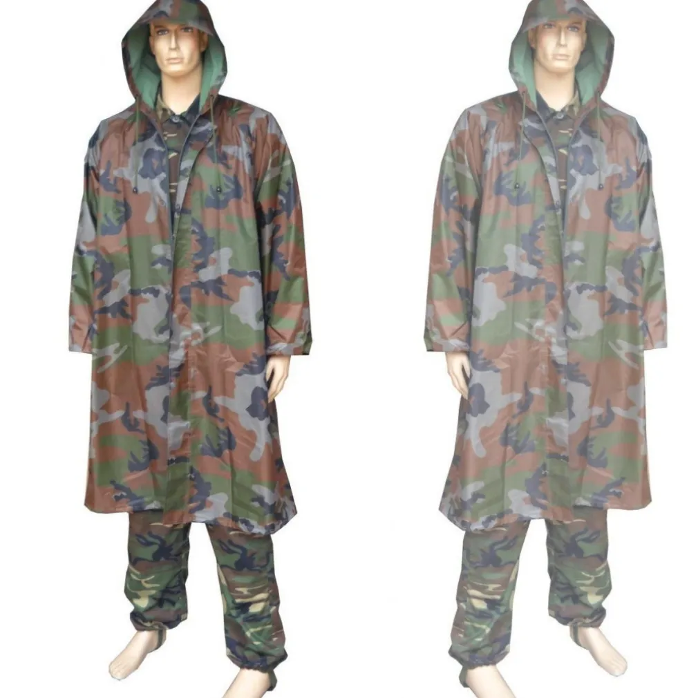 GIACCA MANTELLA IMPERMEABILE MIMETICA MILITARE PVC ANTIPIOGGIA CON CAPPUCCIO
