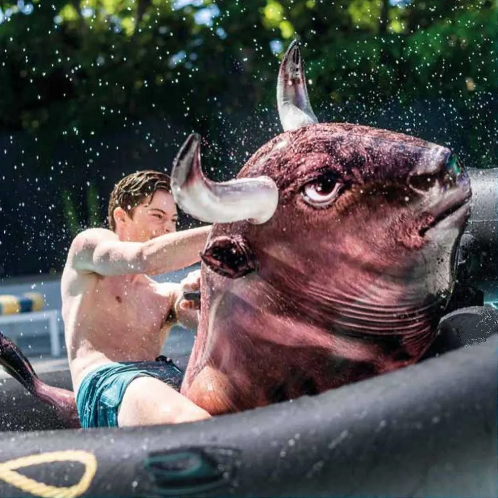 Il toro scatenato arriva anche in versione gonfiabile con inflatabull! Giocare è molto semplice, sali sul toro e resisti il piu possibile mentre gli altri cercheranno di farti cadere! Realizzato interamente in PVC di qualità in colore nero con una bellissima stampa realistica di un toro. Dalle dimensioni di 239x196x81cm questo bellissimo gioco acquatico ti farà passare divertentissime ore con i tuoi amici. Riuscirai a resistere alla furia del temibile toro scatenato!