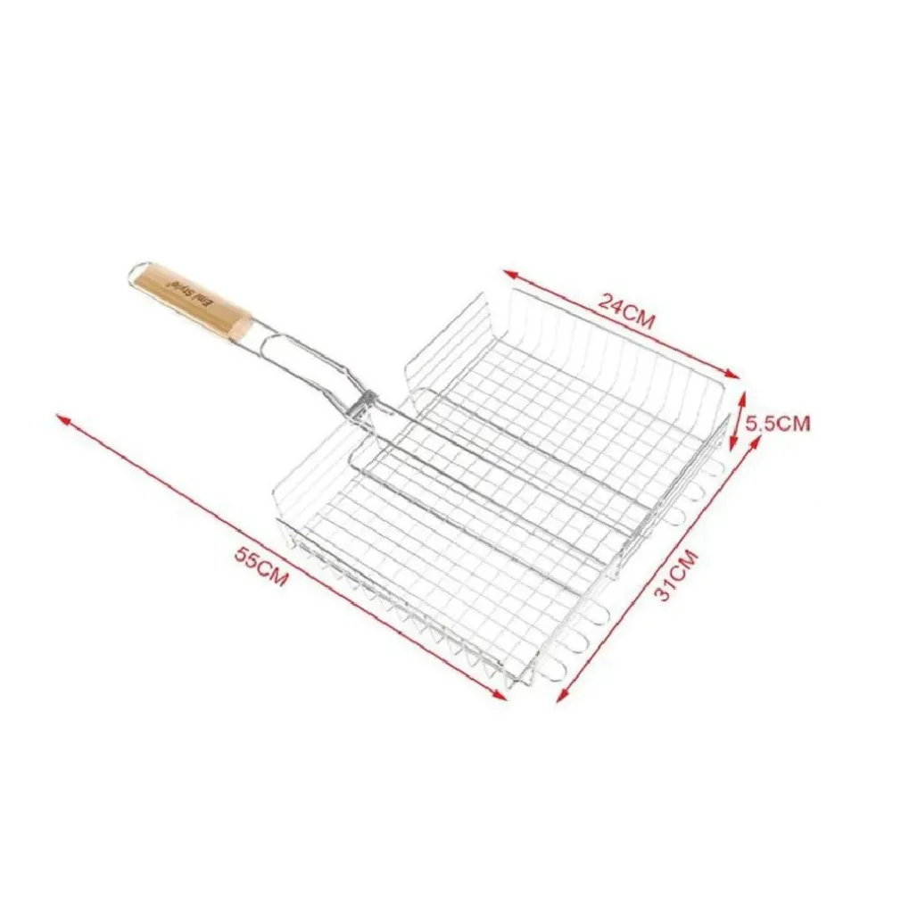 Graticola a rete per grigliate e barbecue, con sponde. Griglia dalla buona resistenza e conducibilità termica, assicura un’ottima grigliatura. Utilizzabile appoggiandoci direttamente sopra i cibi da grigliare i lati alti la rendono adatta alla grigliatura anche di cibi ad alto spessore. Non toccare le parti metalliche durante la cottura. Soluzione ideale per barbecue e grigliate all’aperto con gli amici o in campeggio.
